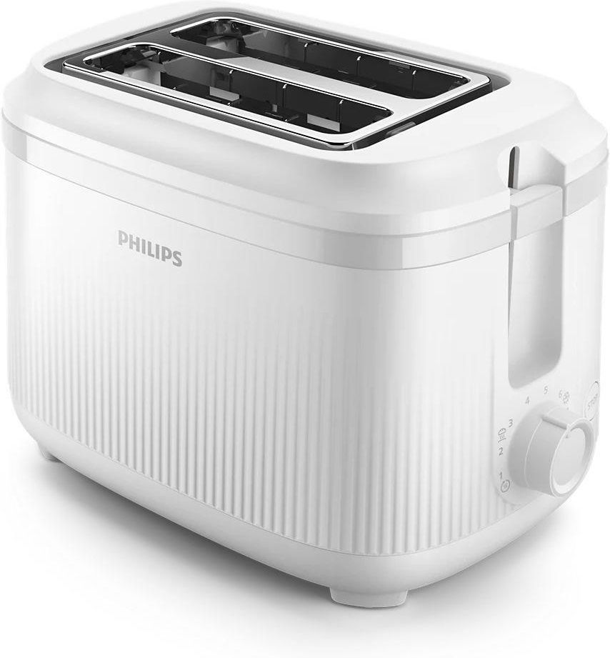 PHILIPS Seria 3000 Toster HD2511/00 Delektuj się każdym tostem. Codziennie w wyśmienitym stylu. Złociste, chrupiące tosty i ciepłe wypieki tak, jak lubisz, dzięki 8 ustawieniom opiekania i poręcznemu stojakowi do podgrzewania bułek. Proste tosty w doskonałym stylu z tosterem Philips z serii 3000. Wyrafinowane wzornictwo wprowadza subtelny, nowoczesny akcent do każdego domu. Pełny zestaw śniadaniowy z czajnikiem i ekspresem do kawy Odkryj nasz pełny zestaw śniadaniowy* z serii 3000 z dopasowanym czajnikiem i ekspresem do kawy. Zaprojektowany z myślą o rozpoczęciu dnia w wyśmienitym stylu! *ta oferta obejmuje tylko toster 8 ustawień opiekania umożliwia przygotowanie tostów w dowolny sposób Delektuj się doskonałymi tostami dokładnie tak, jak lubisz, dzięki 8 ustawieniom do wyboru. Dostosuj opiekanie do każdego rodzaju chleba — grubego lub cienkiego, lekko przypieczonego lub złocistobrązowego. Równomierne opiekanie każdego pieczywa w 2 dużych, wyśrodkowanych szczelinach Urozmaicaj swoje śniadania innymi rodzajami pieczywa niż tylko tostowe! 2 duże, regulowane szczeliny do różnych rozmiarów i rodzajów pieczywa. Mechanizm wyrównujący umieszcza każdą kromkę idealnie pośrodku szczeliny, zapewniając równomierne opiekanie niezależnie od grubości. Bezpieczne wyjmowanie mniejszych kromek chleba za pomocą dźwigni Dźwignia do podnoszenie pieczywa umożliwia bezpieczne wyjmowanie małych, trudno dostępnych kawałków. Wystarczy podnieść dźwignię, aby wyjąć dowolny kawałek. Podgrzewanie różnych wypieków na ruszcie do podgrzewania bułek Zintegrowany ruszt do podgrzewania bułek pozwala umieścić ulubione wypieki i bułki nad szczelinami, aby delikatnie je ogrzać i wypełnić dom pysznymi aromatami. Automatyczne wyłączanie po przyrządzeniu tosta Wystarczy wybrać poziom przyrumienienia i czekać, aż wyskoczą idealnie wypieczone tosty. Aby ułatwić cały proces, toster wyłącza się po zakończeniu pracy. Precyzyjna kontrola opiekania za pomocą przycisku natychmiastowego zatrzymania Przejmij pełną kontrolę nad czasem opiekania za pomocą przycisku natychmiastowego zatrzymania, aby dostosować ustawienia opiekania w dowolnym momencie. Czyszczenie tostera jest łatwiejsze dzięki wyjmowanej tacce na okruszki Usuwanie okruchów jest szybkie i proste. Wystarczy wysunąć wyjmowaną tackę i natychmiast ją wytrzeć.