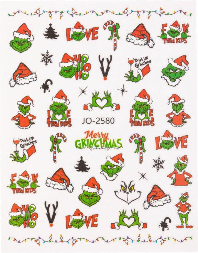 Naklejki Do Paznokci Samoprzylepne Świąteczne Grinch JO-2580 Jeśli szukasz idealnej ozdoby aby szybko i baz problemu ożywić klasyczną stylizację pomalowaną jednym kolorem - dobrze trafiłaś! Precyzyjne zdobienia i najmodniejsze wzory w zasięgu Twojej ręki, nawet wtedy kiedy nie masz wprawionej ręki …