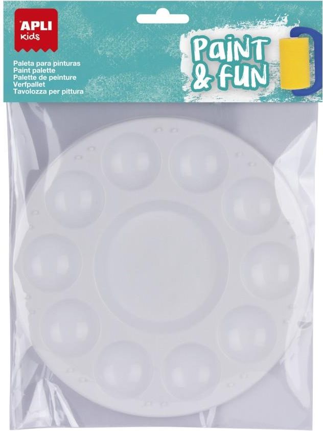 Paleta do mieszania farb Apli Kids Okrągła, plastikowa paleta do mieszania farb Apli Kids. Umożliwia dowolne mieszanie kolorów. Idealna do malowania w domu, jak i plenerze. Z pewnością sprawdzi się do farb akrylowych i akwareli. Duża liczba wgłębień na palecie uławi mieszanie kolorów. Jest poręczna …