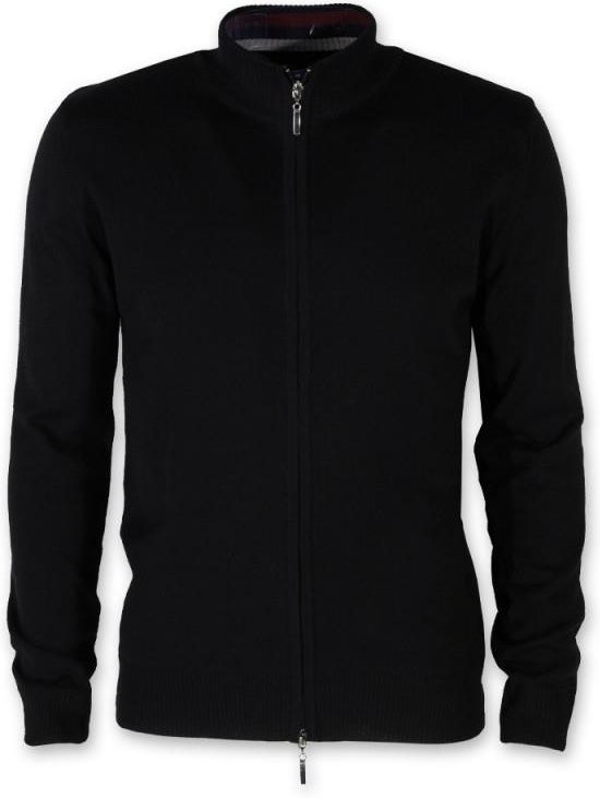 Sweter męski Zip Kolor: czarny Typ: rozpinany z wysokim kołnierzem Skład: 50% bawełna, 50% akryl Rękawy wykończone ściągaczem Dół wykończony ściągaczem Elastyczna tkanina, prosty fason Jakość: pierwsza Gwarancja: 24 m-ce Uszyty w Polsce