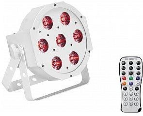 Flat LED spotlight with RGBWA+UV color mixing, incl. IR remote control Slim design for space-saving applications Enjoy perfect solid and pastel colors plus ultra violet thanks to 6-color mixing Stepless color blend, color change, color fade, dimmer and strobe effect Flat, lightweight ABS housing …