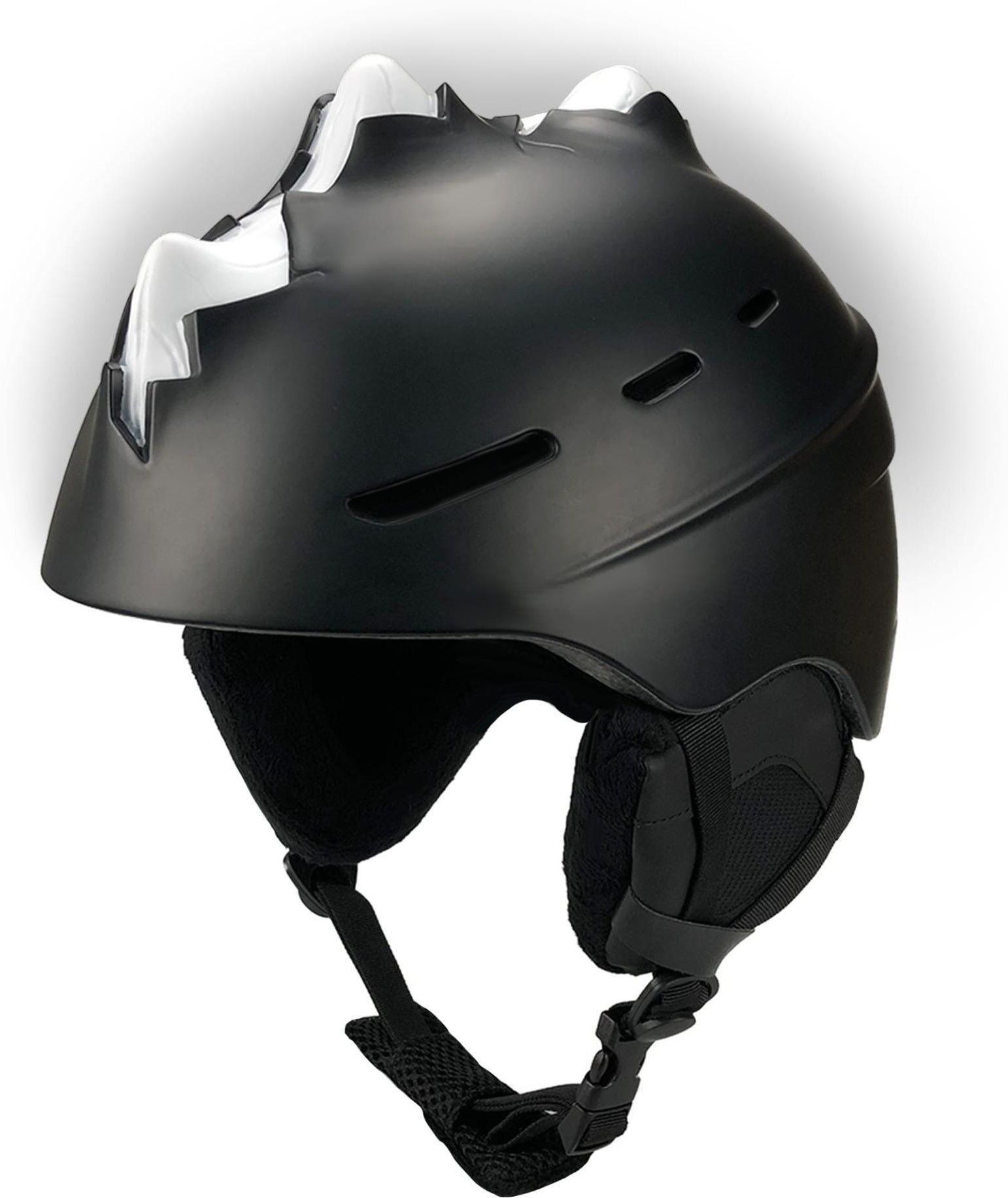 Kask narciarski Crazy Safety matowy czarny z kolcami smoka dla młodzieży i dorosłych | Rozmiar L (58-61cm) | Certyfikat EN1077 Szczegóły produktu • Pochodzenie: Zaprojektowany i opracowany w Danii, wyprodukowany w ChRL • Bezpieczenstwo: Przetestowane i certyfikowane zgodnie z normą bezpieczeństwa …
