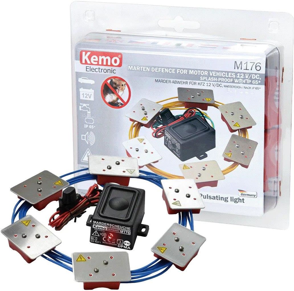 OPIS URZĄDZENIA Samochodowy odstraszacz kun Kemo M176 🟦 Kemo M176 wypłasza kuny emitując wysokie tony ultradźwiękowe oraz szok elektryczny w komorze silnika spowodowany dotknięciem płytek znajdujących się pod napięciem ok. 200 - 300 V/DC (słabe impulsy prądowe, które nie robią krzywdy zwierzęciu, …