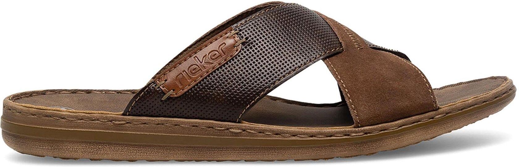 Klapki męskie marki Rieker to idealny wybór dla Panów ceniących sobie połączenie komfortu i klasycznego designu. Ich brązowy kolor doskonale wpisuje się w casualowy styl, co sprawia, że są świetnym dodatkiem do każdej letniej stylizacji. Wygodne i łatwe w zakładaniu, stają się niezastąpione podczas wakacyjnych wypadów, spotkań z przyjaciółmi czy po prostu w domowym zaciszu. Wybierz klapki Rieker i ciesz się lekkością oraz stylem każdego dnia! Od ponad stu lat marka Rieker oferuje niezwykle komfortowe i trwałe obuwie, które powstaje z myślą o zdrowiu stóp. Dzięki wieloletniemu doświadczeniu w produkcji obuwia, ta niemiecka marka doskonale potrafi łączyć wygodę ze stylem, dlatego w ofercie znajdziesz buty w modnych, oryginalnych fasonach, które każdemu przypadną do gustu. Buty Rieker tworzone są z materiałów wysokiej jakości, przez co odznaczają się wyjątkową elastycznością i trwałością, ale też lekkością. Ponadto w obuwiu stosuje się szerszą formę zapewniającą odpowiednią stabilizację stopy, specjalne podeszwy absorbujące wstrząsy oraz odciążające stawy i kręgosłup, a także wyjmowane wkładki z pianki Memory Foam, która idealnie dopasowuje się do kształtu stóp. To doskonałe produkty dla tych, którzy ponad wszystko cenią sobie komfort. Przekonaj się!