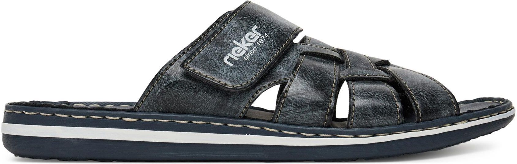 Jeśli szukasz klapków, które zapewnią maksymalną wygodę i styl na co dzień, wybierz model marki Rieker. Granatowe klapki wykonane z wysokogatunkowego tworzywa syntetycznego to idealny wybór dla każdego mężczyzny, ceniącego zarówno komfort, jak i casualowy design. Dzięki technologii Rieker Antistress, te buty oferują wyjątkową amortyzację, redukując napięcie i zmęczenie stóp. Płaska podeszwa gwarantuje stabilność i wygodę, sprawiając, że idealnie nadają się do noszenia przez cały dzień. Niezależnie od tego, czy wybierasz się na spacer po mieście, czy na relaksujący dzień na plaży, klapki Rieker z pewnością staną się Twoim ulubionym obuwiem na lato. Od ponad stu lat marka Rieker oferuje niezwykle komfortowe i trwałe obuwie, które powstaje z myślą o zdrowiu stóp. Dzięki wieloletniemu doświadczeniu w produkcji obuwia, ta niemiecka marka doskonale potrafi łączyć wygodę ze stylem, dlatego w ofercie znajdziesz buty w modnych, oryginalnych fasonach, które każdemu przypadną do gustu. Buty Rieker tworzone są z materiałów wysokiej jakości, przez co odznaczają się wyjątkową elastycznością i trwałością, ale też lekkością. Ponadto w obuwiu stosuje się szerszą formę zapewniającą odpowiednią stabilizację stopy, specjalne podeszwy absorbujące wstrząsy oraz odciążające stawy i kręgosłup, a także wyjmowane wkładki z pianki Memory Foam, która idealnie dopasowuje się do kształtu stóp. To doskonałe produkty dla tych, którzy ponad wszystko cenią sobie komfort. Przekonaj się!
