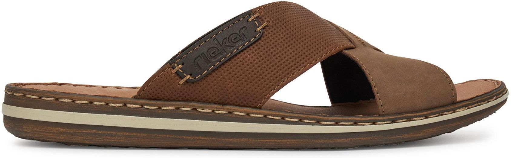 Klapki Rieker to idealny wybór dla każdego mężczyzny, który ceni sobie wygodę i casualowy styl. Wykonane z wysokogatunkowego tworzywa syntetycznego, oferują trwałość i komfort użytkowania przez długi czas. Ciemnobeżowy kolor sprawia, że są uniwersalne i łatwo wkomponują się w różnorodne letnie stylizacje. Wyposażone w technologię Rieker Antistress, klapki zapewniają doskonałą amortyzację, zmniejszając wstrząsy i obciążenie stóp, co przekłada się na maksymalny komfort podczas chodzenia. Płaska podeszwa dodaje stabilności, a casualowy design sprawia, że są idealne do noszenia na co dzień. Wybierz Rieker i ciesz się wygodą oraz stylem każdego dnia! Od ponad stu lat marka Rieker oferuje niezwykle komfortowe i trwałe obuwie, które powstaje z myślą o zdrowiu stóp. Dzięki wieloletniemu doświadczeniu w produkcji obuwia, ta niemiecka marka doskonale potrafi łączyć wygodę ze stylem, dlatego w ofercie znajdziesz buty w modnych, oryginalnych fasonach, które każdemu przypadną do gustu. Buty Rieker tworzone są z materiałów wysokiej jakości, przez co odznaczają się wyjątkową elastycznością i trwałością, ale też lekkością. Ponadto w obuwiu stosuje się szerszą formę zapewniającą odpowiednią stabilizację stopy, specjalne podeszwy absorbujące wstrząsy oraz odciążające stawy i kręgosłup, a także wyjmowane wkładki z pianki Memory Foam, która idealnie dopasowuje się do kształtu stóp. To doskonałe produkty dla tych, którzy ponad wszystko cenią sobie komfort. Przekonaj się!