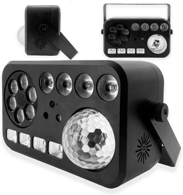LIGHT4ME PARTY V multiefekt świetlny LED RGBW-UV 6w1 efekt Bee Eye biały stroboskop UV Water Wave par 2x laser R/G oświetlenie D Dąbrowa Górnicza