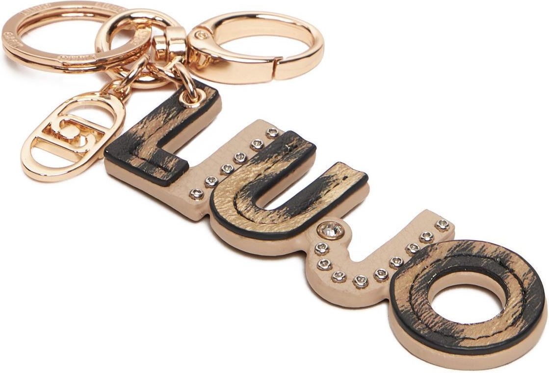 Brelok do kluczy Liujo. Wymiary: 10 x 3 cm Metalowy brelok do kluczy Zawieszka z logo z dżetami i zwierzęcym nadrukiem. Metalowa zawieszka LJ Zapięcie na karabińczyk. Ref.: AF5209-E0419, Kolor: Dorado, Styl: Zwykły, Materiał: Poliester