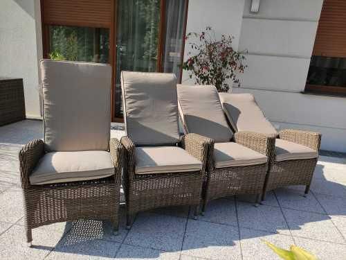 Wszystkie wybarwienia kompletu oraz fotel można zobaczyć na ekspozycji sklepu stacjonarnego. BelGiardino - meble ogrodowe z technorattanuDzięki zdobytemu na przestrzeni lat doświadczeniu jesteśmy w stanie dostarczyć główne elementy aranżacji ogrodów, tarasów oraz balkonów. Z roku na rok staramy się dopracowywać naszą kolekcję, odpowiadając na potrzeby klientów i zmieniające się trendy. Polecamy wysokiej jakości meble ogrodowe z technorattanu, które w każdej chwili dostosować można do aktualnych potrzeb. Zalety mebla poduszki w kolorze BEŻOWY SZARY i o grubości 5cm; odporność na działanie promieni UV; odporność na warunki atmosferyczne; wzmocniona konstrukcja stelaża; rama aluminiowa, malowana proszkowo; dodatkowe wzmocnienia zapewniają długotrwałą wygodę i komfort użytkowania. Materiały i wykonanieFotel ogrodowy NEAPOL marki BelGiardino jest wykonany z PÓŁOKRĄGŁEGO technorattanu w kolorze BRĄZOWY MAT i o grubości 6mm, który jest doskonałą imitacją naturalnego rattanu. lekki stelaż jest wykonany z aluminium malowanego proszkowo; konstrukcja mebla jest ręcznie opleciona wspomnianym rattanem PE, co potęguje efekt naturalności; technorattan cechuje się wyjątkową lekkością oraz wytrzymałością na warunki atmosferyczne, takie jak deszcz i śnieg; dzięki zastosowaniu nowego, syntetycznego materiału uzyskano doskonałą jakość oraz wytrzymałość; w komplecie znajdują się poduszki, które wytworzono z wodoodpornego materiału. Zapewniają one komfortowe użytkowanie zestawu; wszystkie pokrowce na poduszki są zaimpregnowane, dzięki czemu są odporne na warunki atmosferyczne oraz poplamienia, dzięki czemu przypadkowo wylane napoje nie stanowią już żadnego problemu; zastosowany zamek błyskawiczny daje możliwość szybkiego zdjęcia i wyczyszczenia każdej poszewki.