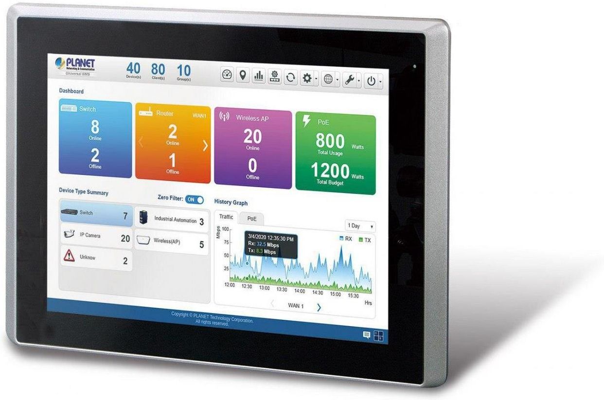 Uniwersalny kontroler zarządzania siecią z ekranem dotykowym LCD Kontroler zarządzania siecią NMS-1000V firmy PLANET może monitorować wszelkiego rodzaju wdrożone urządzenia sieciowe, takie jak przełączniki zarządzane, media konwertery, routery, inteligentne punkty dostępowe, telefony VoIP, kamery …