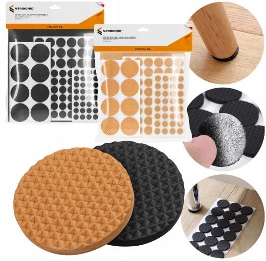 Podkładki filcowe pod meble samoprzylepne 93 sztuki mix Zadbaj o swoją podłogę dzięki zestawowi 93 podkładek filcowych pod meble VERGIONIC! Te niepozorne, ale niezwykle praktyczne akcesoria doskonale zabezpieczają drewniane parkiety, panele oraz podłogi przed zarysowaniami i zniszczeniami. Dodatkowo, podkładki tłumią hałas związany z przesuwaniem mebli i ułatwiają ich przemieszczanie, bez uszkodzenia powierzchni. ✨ Zalety Ochrona podłogi: Chronią przed zarysowaniami i zużyciem parkietów, paneli oraz innych delikatnych powierzchni. Tłumienie hałasu: Zmniejszają hałas przy przesuwaniu mebli, dzięki czemu Twoje wnętrze staje się cichsze i bardziej komfortowe. Łatwy montaż: Samoprzylepne podkładki nie wymagają użycia narzędzi – wystarczy odkleić je i przykleić do spodu mebla. Wytrzymałość: Wykonane z wysokiej jakości filcu i pianki, które zapewniają długotrwałą ochronę. Różnorodne rozmiary: W zestawie znajdziesz 93 podkładki w różnych rozmiarach, które dopasują się do różnych typów mebli. Parametry W opakowaniu: 93 szt. Materiał: Filc, pianka Kolor: Jasno-brązowy lub czarny Produkt dostępny w dwóch wersjach kolorystycznych prosimy o zawarcie informacji o kolorze w uwagach do zamówienia w przeciwnym razie wysyłamy losowy kolor! Dzięki temu zestawowi ochronisz swoje podłogi i zadbasz o estetykę wnętrza, zapewniając sobie długotrwały komfort i spokój. Nie czekaj – wybierz idealne rozwiązanie dla swojego domu już teraz!