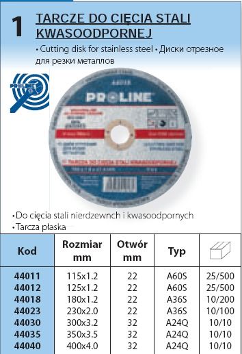 Opinie PROLINE TARCzA DO CIęCIA STALI KWASOODPORNEJ ROzMIAR 125x1.2mm 44012 Dąbrowa Górnicza