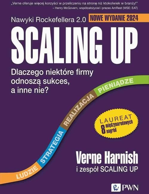Nowe wydanie bestsellerowego podręcznika do rozwoju biznesu! Podręcznik, który zdobył osiem ważnych międzynarodowych nagród, w tym: International Book Awards w kategorii General Business. National Indie Excellence Award w kategorii General Business. Readers' Favorite International Book Award Gold Medal w kategorii Non-Fiction Business. Scaling Up to zaktualizowane i uzupełnione wydanie klasycznego już Mastering the Rockefeller Habits. Verne Harnish i ekipa Scaling Up wykorzystują strategiczne, ponad trzydziestoletnie doświadczenie, by pokazać, jak w odpowiedni sposób rozwinąć swój biznes. Książka podzielona została na cztery główne części, w których omawiane są najważniejsze elementy skalowania każdej firmy: ludzie, strategia, realizacja, pieniądze. Harnish wychodzi od relacji między pracownikami a zarządem. Pokazuje, w jaki sposób przygotować strategię i jak zabrać się do jej realizacji, by na koniec opowiedzieć o wyzwaniach finansowych związanych ze skalowaniem biznesu. Wszystko to w oparciu o praktyczne narzędzia (wśród nich Jednostronicowy Plan Strategiczny, z którego skorzystało już 40 tysięcy firm na całym świecie), które ułatwią wprowadzenie kolejnych zmian w firmie. Autor przechodzi od razu do sedna, już od pierwszych stron ucząc czytelnika nawyków Rockefellera. Scaling Up to obowiązkowa pozycja dla wszystkich, którzy chcą przeskalować swój biznes lub dowiedzieć się, jak urosnąć i nie stracić. Spis treści: Okładka Strona tytułowa Strona redakcyjna Spis treści Wprowadzenie. Narzędzia zwiększania skali 1. Ogólny zarys Ludzie, strategia, realizacja, pieniądze 2. Bariery rozwoju Przywództwo, infrastruktura i marketing ZWIĘKSZANIE SKALI. LUDZIE Wprowadzenie. Ludzie 3. Liderzy AOF i AOP twojej firmy 4. Zespół Przyciąganie, zatrudnianie i coaching 5. Rdzeń Wartości, sens istnienia i kompetencje ZWIĘKSZANIE SKALI. STRATEGIA Wprowadzenie. Strategia 6. 7 Warstw Strategii Jak zdominować branżę 7. Jednostronicowy Plan Strategiczny Narzędzie do planowania strategicznego 8. Proces planowania. Przygotowania i prowadzenie ZWIĘKSZANIE SKALI. REALIZACJA Wprowadzenie. Realizacja 9. Priorytet Uwaga, linia mety i zabawa 10. Dane Wzmacniająca prognoza 11. Rytm spotkań Puls organizacji ZWIĘKSZANIE SKALI. PIENIĄDZE Wprowadzenie. Pieniądze 12. Pieniądze Przyspieszenie przepływów pieniężnych 13. Potęga Jednego 7 najważniejszych dźwigni 14. Wyjście. 4 tajniki maksymalizacji wyceny rynkowej firmy Co dalej? 5 rzeczy, które możecie zrobić już teraz O Autorze Przypisy