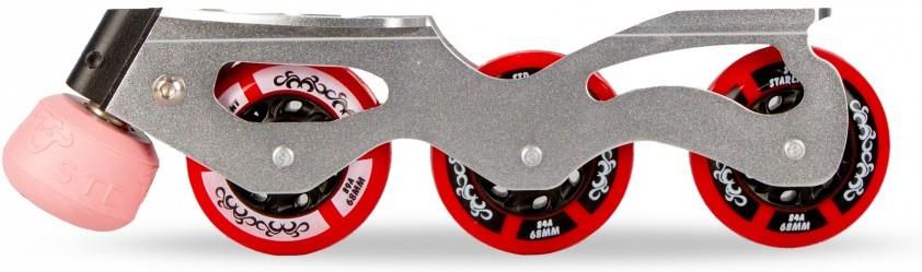 Szyny STD Skates Starlight Lite To innowacyjne rozwiązanie dla miłośników jazdy figurowej na rolkach, zapewniające niezrównaną zwrotność i doskonałe prowadzenie, które dotychczas było trudne do osiągnięcia na rolkach z tradycyjnymi szynami. Dzięki wyjątkowej konstrukcji oraz wysokiej jakości komponentom, te szyny zmieniają sposób, w jaki do tej pory postrzegano jazdę figurową na rolkach. Główne cechy: Trzy koła: Model Lite charakteryzuje się trzema kołami ułożonymi w sposób symulujący krzywiznę płozy łyżwiarskiej, co pozwala na bardziej naturalne i precyzyjne ruchy podczas jazdy figurowej. Toe Stopper zastępujący ząbki świetnie odwzorowuje charakterystykę łyżew figurowych Zwrotność: Dzięki specjalnej konstrukcji szyn, STD Skates Starlight Lite zapewniają doskonałą zwrotność i prowadzenie rolek, co umożliwia wykonywanie skomplikowanych figur i piruetów z łatwością i precyzją. Doskonały stosunek jakości do ceny: Model Lite wyróżnia się bardzo dobrym stosunkiem jakości do ceny, zachowując wysoką jakość materiałów i wykonania przy atrakcyjnej cenie, co sprawia, że jest idealnym wyborem dla szerokiego grona użytkowników. W zestawie STD Starlight Lite znajdziesz: Lekkie i wytrzymałe szyny STD Starlight Lite Wykonane z wytrzymałego, szczotkowanego aluminium lotniczego, zapewniające doskonałą trwałość i stabilność. Koła STD: 89 A, 84A o rozmiarze 68 mm, które efektywnie amortyzują wstrząsy, zapewniając płynność ruchu i dobrą odporność na ścieranie nawet na asfalcie. ToeStop STD Super Jump Light Hamulec który zastepuje użytkownikowi ząbki łyżew figurowych, zapewniając stabilność i kontrolę podczas jazdy. Możliwość regulacji wysokości pozwala dostosować ustawienie do indywidualnych preferencji. Podsumowując, szyny STD Skates Starlight Lite to doskonałe rozwiązanie dla osób pragnących doskonałego prowadzenia i zwrotności podczas jazdy figurowej na rolkach. Ich zaawansowana konstrukcja i wysokiej jakości materiały zapewniają nie tylko doskonałe właściwości jezdne, ale także pełną kontrolę i komfort podczas treningów i występów.