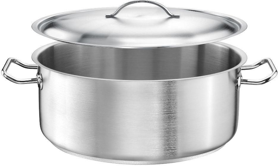 Garnek niski z pokrywką o pojemności 5 l wykonany ze stali nierdzewnej. Przeznaczony do profesjonalnej gastronomii. Ścianki ze stali o grubości 0,6 mm. Wielowarstwowe dno typu sandwich (stal nierdzewna-aluminium-stal nierdzewna) o grubości 3 mm. Masywne nitowane uchwyty. Garnek może być użytkowany na wszystkich typach kuchni: elektrycznej, gazowej oraz indukcyjnej. Garnek dostarczany wraz z pokrywką.