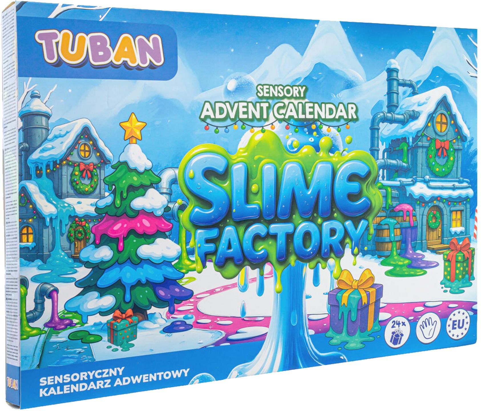 KALENDARZ ADWENTOWY - SLIME FACTORY Sensoryczny Kalendarz Adwentowy od Tuban to 24 dni kreatywnej zabawy. Odkryj magiczny świat mas plastycznych, piasków, slime’ów i eksperymentów w naszym sensorycznym kalendarzu adwentowym. Każde z 24 okienek to wyjątkowa niespodzianka – gotowa masa do zabawy lub składniki i dodatki do stworzenia własnych slimów. Idealny zestaw dla dzieci, które kochają eksperymenty i sensoryczne doznania. Kalendarz ten to zabawa, która rozwija: wspiera rozwój motoryki małej, kreatywność, koncentrację i zmysł dotyku. Idealny jako prezent mikołajkowy lub grudniowa niespodzianka, która każdego dnia przynosi nową radość. ZESTAW ZAWIERA 200 ml kleju PVA 200 ml aktywatora barwnik 35 ml aromat 35 ml 2,5 g brokatu mineralnego 11 g kulek mineralnych 6 g sztucznego śniegu 200 g Jiggly Slime 10 g wodnych kryształów 60 g piasku Fluffy Sand 100 g piasku dynamicznego 40 g piasku hydrofobowego Płyn do baniek 60 ml 1,5 g świecącego proszku Tubi Smart Mass 35 g Miarkę SPECYFIKACJA Wymiary opakowania ok.: 62 x 42 x 6 cm Sugerowany wiek: 6 lat+ Produkty firmy Tuban są bezpieczne dla dzieci. Nie zawierają substancji toksycznych. Składniki wchodzące w skład zestawu zostały przebadane i posiadają wszystkie niezbędne certyfikaty bezpieczeństwa. Produkt wolny od mikroplastiku. WYPRODUKOWANO W POLSCE. OSTRZEŻENIA! Nie nadaje się dla dzieci w wieku poniżej 36 miesięcy. Ryzyko zadławienia. Zawiera małe elementy. Nie połykać. Do używania pod nadzorem osoby dorosłej.Nie nadaje się do spożycia. W przypadku połknięcia: wypłukać usta. Nie wywoływać wymiotów. Unikać kontaktu z oczami. W przypadku dostania się do oczu: Ostrożnie płukać wodą przez kilka minut. Wyjąć soczewki kontaktowe, jeżeli są i można je łatwo usunąć. Nadal płukać. W razie konieczności zasięgnięcia porady lekarza należy pokazać pojemnik lub etykietę. Dokładnie umyć ręce po użyciu. Opakowanie nie jest zabawką. Nie używać na dywanach, tapicerce, włosach, ubraniach ani porowatych powierzchniach – może zostawić trwałe plamy. Zachowaj opakowanie, ponieważ zawiera ważne informacje!