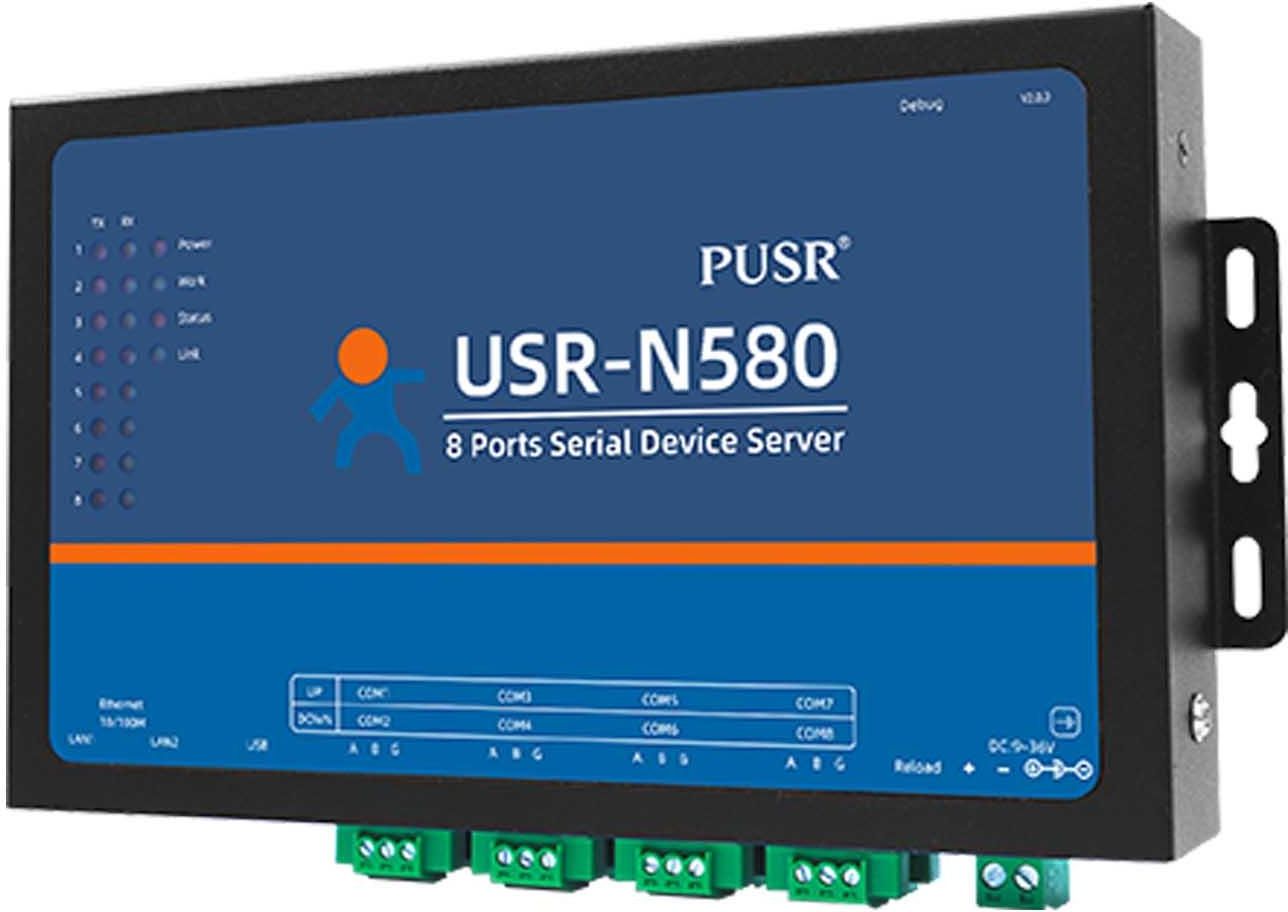 USR-N580 to przemysłowy media konwerter z 8x portami RS485 na LAN w metalowej obudowie. Wybór rodzaju portu odbywa się poprzez odpowiednie ustawienie przełączników. Urządzenie zapewnia przeźroczystą transmisję danych. Oparty na procesorze Cortex-M7, obsługuje protokół Modbus RTU oraz TCP IP. Udostępnianie urządzeń brzegowych - Łączność w erze IIoT Szerokie wsparcie dla połączenia platformy IoT ze standardowym protokołem MQTT Edge Computing (przetwarzanie brzegowe)N580 aktywnie gromadzi dane i wykonuje wewnętrzne obliczenia, a następnie przesyła je do platformy chmurowej w dostosowanym formacie Json. Bramy Edge Computing mogą skutecznie odciążyć serwer. Szyfrowanie transmisji danychObsługuje szyfrowanie SSL/TLS w trybach klienta TCP, klienta HTTP i MQTT, obsługuje dwukierunkowe uwierzytelnianie certyfikatów. Zarządzanie chmurą PUSRŁatwe do osiągnięcia przetwarzanie brzegowe, połączenie parami, zdalna obsługa i konserwacja. Bramka ModbusTransfer pomiędzy protokołami modbus RTU i modbus TCP, obsługa modbus multi-host polling. Obsługa do 128 punktów danych dla gromadzenia danych i mapowania adresów modbus. Funkcja połączenia kaskadowegoPodwójny port Ethernet 10/100 Mb/s obsługuje funkcję przełącznika. Inne urządzenia można łączyć kaskadowo za pośrednictwem USR-N580. Swobodny wybór wielu trybów pracyN580 obsługuje klienta TCP, TCP Server, UDP Client, UDP Server Httpd Client (później obsługuje klienta MQTT) i inne tryby; wystarczy prosta konfiguracja, aby uzyskać funkcję przekazywania danych. Schemat Arm (rdzeń Cortex-M7) zapewniający lepsze wrażenia z użytkowaniaSchemat Arm Cortex-M7, procesor 480Mhz, 1M RAM +4M Flash Schemat charakteryzuje się krótkim opóźnieniem transmisji, dużą prędkością transmisji danych, elastyczną rozbudową i stabilnością. Najważniejsze cechy 8x RS485 obsługa sygnałów RTS/CTS Każdy z portów może pracować niezależnie 1x Port Ethernet WAN/LAN Zasilanie 9-36V - gniazdo zasilacza (5,5/2,1) + przemysłowe gniazdo zasilania LED: Power, Work, TX, RX Obsługa DHCP, dynamiczny lub statyczny IP Konfiguracja poprzez WEBserver Modbus RTU / Modbus TCP IP Tryby pracy: TCP Server, TCP Client, UDP Client, UDP Server Wsparcie flow control CTS/RTS, XON/XOFF Sprzętowy Watchdog USR-N580Operating Voltage DC 9.0~36.0V Operating Current 120mA@12V Net interface format RJ45,10/100Mbps Serial baud rate 600~921.6K(bps) No. of serial ports 8x RS485 Net protocol IPV4, TCP/UDP, HTTP IP mode Static IP, DHCP DDNS supports User Configuring Software/webpage configuring, serial/network AT commands Operation mode TCP server, TCP client, UDP server, UDP client Support two-way socket Similar RFC2217 support HTTPD client support TCP server Support up to 8 TCP Clients (user-defined) Net buffer 48Kbyte Serial buffer Dynamic packet buffer E.g: When the packet length is 10Byte, can buffer200 packets (2KB). When the packet length is 1460Byte, can buffer 5 packets (7.3KB). Average delay <10ms> Related software USR-VCOM, set-up software 485_EN switching speed <100us> Flow control XON/XOFF Registration packet User-defined, MAC, USR Cloud Web to serial Websocket function Heartbeat packet UART, NET Hardware protection Electrostatic protection ESD: level 3 Anti-surge: level 3 Pulse group: level Dimension 222*122*35mm(L*W*H With the terminal, ears) Operating temperature -40~+85°C Storage temperature -40~105°C Operating humidity -40~+85°C (Industrial) Storage humidity -45~105°C, 5~95%RH (non-condensing) Accessories Power adaptor 12V 1A, Ethernet cable