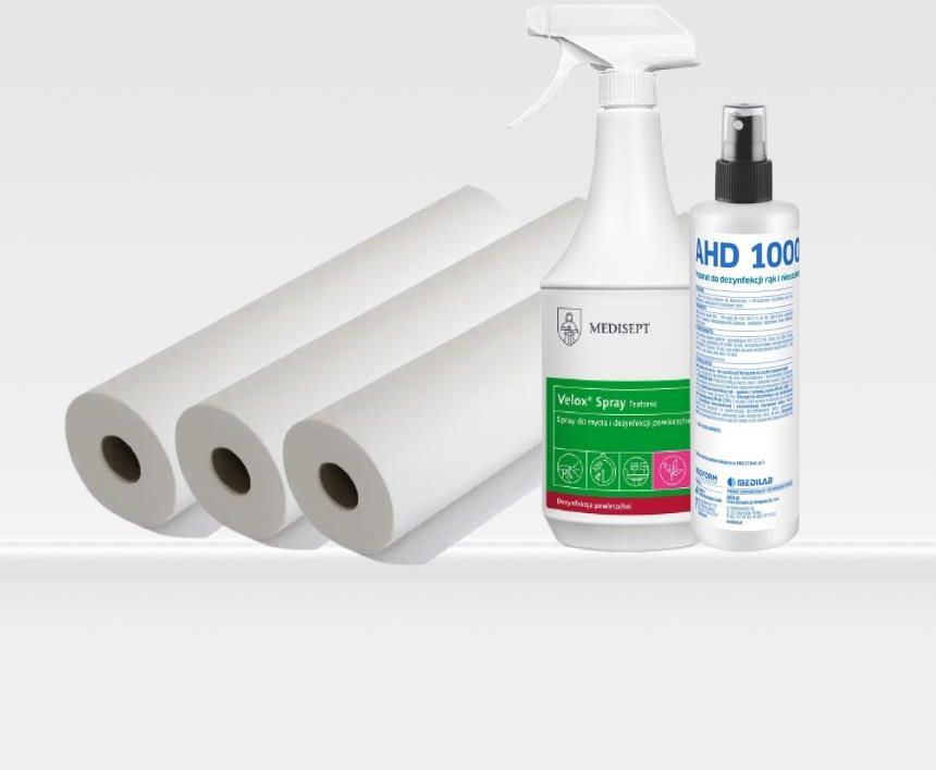 Zestaw Startowy do Fotela – Czystość i Higiena na Start! Szukasz niezawodnego zestawu, który pozwoli Ci szybko i skutecznie przygotować fotel zabiegowy do pracy? Nasz Zestaw Startowy do Fotela to must-have dla każdego salonu kosmetycznego, gabinetu medycznego czy studia tatuażu. W jednym komplecie otrzymujesz wszystko, co niezbędne, by zapewnić swoim klientom komfort, a sobie – pełne bezpieczeństwo i higienę pracy. W zestawie znajdziesz: 🛏️ Prześcieradło medyczne w rolce 60x50 m, 14 g – 3 sztuki. Delikatne, a jednocześnie wytrzymałe prześcieradła jednorazowe, które doskonale chronią powierzchnię fotela przed zabrudzeniami. Łatwe w użyciu, estetyczne i higieniczne – idealne do codziennego użytku. 🧴 Medilab AHD 1000 – 250 ml. Skuteczny płyn do dezynfekcji rąk i skóry, oparty na etanolu, o potwierdzonej skuteczności przeciwwirusowej i bakteriobójczej. Szybko się wchłania, nie klei się i nie wysusza skóry. 🧽 Medisept Velox Spray Neutral – 1 l. Gotowy do użycia płyn do dezynfekcji powierzchni. Bezzapachowy, nie zawiera alkoholu – idealny do miejsc, gdzie ważne jest zachowanie delikatnego zapachu. Działa błyskawicznie, nie pozostawia smug i nie niszczy powierzchni. Dlaczego warto? ✅ Kompleksowe rozwiązanie na start ✅ Oszczędność czasu i pieniędzy ✅ Profesjonalna higiena na wyciągnięcie ręki. Zadbaj o najwyższe standardy już od pierwszego dnia – wybierz Zestaw Startowy do Fotela, który spełni oczekiwania nawet najbardziej wymagających specjalistów. Cechy Produktu 🛏️ Prześcieradło medyczne: Trzy sztuki jednorazowych, wytrzymałych prześcieradeł w rolce, które doskonale chronią powierzchnię fotela. 🧴 Medilab AHD 1000: Skuteczny płyn dezynfekujący o potwierdzonej skuteczności przeciwwirusowej i bakteriobójczej. 🧽 Medisept Velox Spray: Bezzapachowy płyn do dezynfekcji powierzchni, który nie pozostawia smug i nie niszczy powierzchni. ✅ Kompleksowe rozwiązanie: Wszystko, czego potrzebujesz do zachowania higieny i czystości w jednym zestawie. 💰 Oszczędność czasu i pieniędzy: Profesjonalny zestaw, który zapewnia higienę na wyciągnięcie ręki. Zastosowanie Produktu Zestaw Startowy do Fotela jest idealny do użycia w salonach kosmetycznych, gabinetach medycznych oraz studiach tatuażu. Dzięki niemu możesz szybko przygotować fotel do pracy, zapewniając klientom komfort i higienę. Dodatkowe Sekcje Najważniejsze składniki Prześcieradło medyczne: Wykonane z wytrzymałego materiału, który chroni powierzchnię. Medilab AHD 1000: Zawiera etanol dla skutecznej dezynfekcji. Medisept Velox Spray: Formuła bezalkoholowa, idealna dla delikatnych powierzchni. Stosowanie Prześcieradło: Rozwiń i nałóż na fotel przed każdym zabiegiem. Medilab AHD 1000: Nanieś na dłonie i skórę przed rozpoczęciem pracy. Medisept Velox Spray: Spryskaj powierzchnię fotela i przetrzyj czystą szmatką. Tabela Specyfikacji Technicznej Produkt Specyfikacja Prześcieradło Medyczne Rolka 60x50m, 14g, 3 sztuki Medilab AHD 1000 250 ml, płyn do dezynfekcji rąk i skóry Medisept Velox Spray 1 l, płyn do dezynfekcji powierzchni