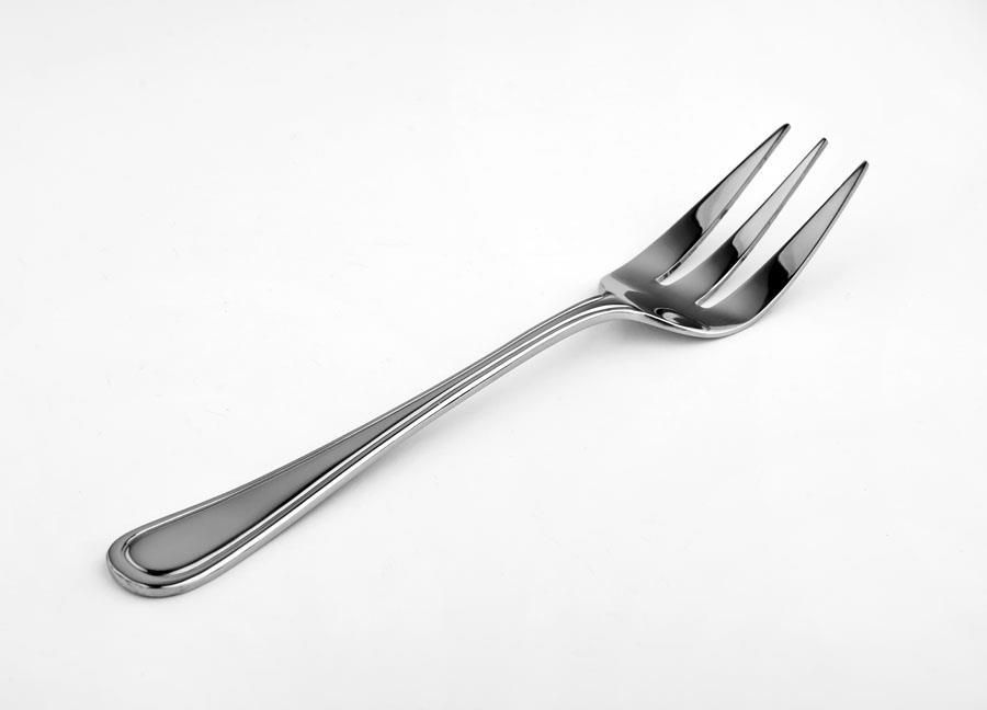 Widelec do serwowania z kolekcji Regular. Bardzo praktyczny i niezawodny podczas domowych imprez lub większych okoliczności. Sprawdzi się do nakładania wędlin, serów i innych przekąsek serwowanych na półmiskach. Stół nabiera eleganckiego wyglądu i efektownej oprawy. Produkt prezentuje się bardzo elegancko. Prosta forma bez zbędnych zdobień sprawia, że pasuje praktycznie do każdej zastawy stołowej. Trwałość i uniwersalny wygląd elementów kolekcji Regular to cechy, które powodują, że sztućce chętnie kupowane są przez hotelarzy i restauratorów. Bardzo dobrze sprawdzają się w branży HORECA. Produkt przystosowany jest do użytku w zmywarkach. Dla dłuższej żywotności noża zaleca się wycieranie do sucha po każdorazowym umyciu. Nie zaleca się pozostawiania noża w zmywarce zbyt długo po umyciu.