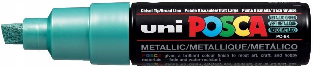 Marker z farbą plakatową Uni POSCA PC-8K metalic z X23063 * szeroki ścięty marker z farbą plakatową do pisania i malowania po każdej powierzchni * pigmentowy tusz na bazie wody * nie przesiąka przez papier * zapewnia spójną teksturę od początku do końca * wystarczy energicznie potrząsnąć markerem …