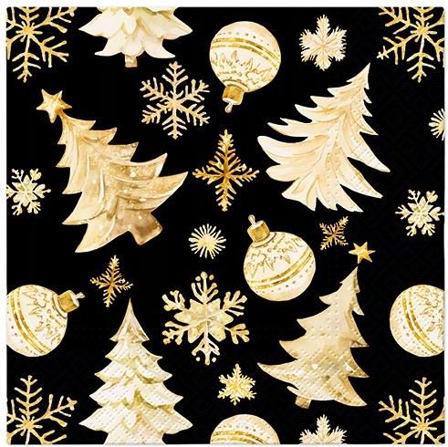 Paw Serwetki Świąteczne 33x33 Choinki I Bombki Na Czarnym Tle 20szt. Dąbrowa Tarnowska