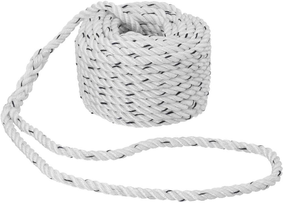 Lina cumownicza z zaplecioną pętlą do bezpiecznego cumowania łodzi. Z trzech splotek z odpornego na promieniowanie UV poliestru.