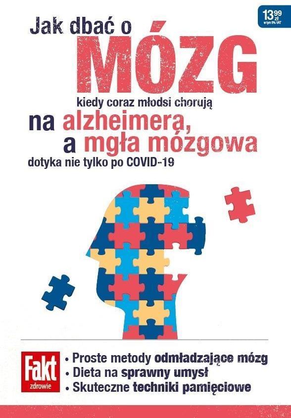 Zachowaj zdrowy umysł w każdym wieku. To mit, że wszyscy jesteśmy skazani na demencję i nic w tej sprawie nie możemy zrobić. Otóż możemy, i to sporo. Pozornie nieważne, proste zmiany w codziennym życiu, jak więcej relaksu i snu czy modyfikacja diety, sprawiają, że mózg działa bez zarzutu. Z tego poradnika dowiesz się: czy alzheimer może dopaść młodą osobę, jak pandemia COVID-19 wpływa na nasze zdolności intelektualne, dlaczego kobiety zapamiętują inaczej (i co innego) niż mężczyźni, co wspólnego ma sprawne/wysportowane ciało ze sprawnym/bystrym umysłem. PLUS mnóstwo informacji, które zmotywują twój mózg do działania, czyli zadbania o to, by był w jak najlepszej formie do późnej starości. Jak dbać o mózg. Przewodnik po zdrowiu psychicznym "Jak dbać o mózg" to praktyczny poradnik, który pomoże Ci zrozumieć, jak dbać o najważniejszy organ w Twoim ciele – mózg. Maja Nowicka, autorka i ekspertka w dziedzinie zdrowia psychicznego, dzieli się sprawdzonymi metodami i technikami, które wspierają funkcjonowanie mózgu oraz poprawiają samopoczucie. Dla kogo jest ta książka? Osoby pragnące poprawić swoje zdrowie psychiczne Studenci i młodzi dorośli, którzy chcą lepiej zrozumieć funkcjonowanie mózgu Rodzice, którzy chcą wspierać rozwój swoich dzieci Każdy, kto interesuje się tematyką zdrowia i samopomocy Co zyskasz dzięki tej publikacji? Praktyczne porady: Dowiedz się, jak wprowadzać zdrowe nawyki, które wspierają pracę mózgu. Wiedza o zdrowiu psychicznym: Zrozum, jak emocje i stres wpływają na funkcjonowanie mózgu. Techniki relaksacyjne: Poznaj metody, które pomogą Ci zredukować stres i poprawić koncentrację. Wsparcie w codziennym życiu: Odkryj, jak dbać o mózg w kontekście pracy, nauki i relacji międzyludzkich. Kluczowe tematy i obszary Zdrowie psychiczne i jego znaczenie Techniki poprawiające funkcjonowanie mózgu Rola diety i aktywności fizycznej w zdrowiu mózgu Stres i jego wpływ na zdrowie psychiczne Metody relaksacji i medytacji O Autorze Maja Nowicka – ekspertka w dziedzinie zdrowia psychicznego, autorka wielu publikacji dotyczących samopomocy i rozwoju osobistego. Jej prace koncentrują się na praktycznych aspektach dbania o zdrowie psychiczne oraz na metodach wspierających rozwój osobisty. O Wydawcy Ringier Axel Springer Polska – renomowane wydawnictwo, które specjalizuje się w publikacjach z zakresu zdrowia, rozwoju osobistego oraz literatury faktu, oferujące wysokiej jakości materiały edukacyjne. Producent/osoba odpowiedzialna za bezpieczeństwo produktuRingier Axel Springer Polska Sp. z o.o.Domaniewska 4902-672 Warszawagpsr@ringieraxelspringer.pl500 011 068