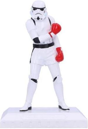 Star Wars Stormtrooper The Greatest (high: 18 cm) / Gwiezdne Wojny Sztur Zobacz szturmowca, jakiego jeszcze nie widziałeś! Oficjalnie licencjonowana figurka Stormtrooper to połączenie kultowego wyglądu imperialnego żołnierza z nieoczekiwanym sportowym zacięciem. Ten wyjątkowy model przedstawia szturmowca w czerwonych rękawicach bokserskich i bokserkach, gotowego wkroczyć na ring. Wykonany z najwyższej jakości żywicy i ręcznie malowany z dbałością o każdy detal, ma wysokość 18 cm, co czyni go doskonałym dodatkiem do każdej kolekcji filmowych gadżetów. To świetny prezent dla fanów Star Wars, miłośników popkultury i wszystkich, którzy cenią oryginalne dekoracje z przymrużeniem oka. Oficjalnie licencjonowany produkt. Gotowy do walki – nie z Rebelianckim Sojuszem, ale o miejsce na Twojej półce! Uniwersum Gwiezdnych Wojen to epicka saga science fiction, której akcja toczy się w odległej galaktyce, gdzie trwa nieustanna walka między jasną a ciemną stroną Mocy. Centralną rolę odgrywa konflikt między Imperium Galaktycznym a Sojuszem Rebeliantów (a później Ruch Oporu), z bohaterami takimi jak Luke Skywalker, Darth Vader czy Leia Organa. Szturmowcy to charakterystyczni żołnierze Imperium, znani ze swojego białego pancerza i — legendarnej już — nieskuteczności w celowaniu. Choć wyglądają groźnie, często służą jako tło dla heroicznych czynów rebeliantów i droidów. Ich wizerunek stał się jednym z najbardziej rozpoznawalnych symboli popkultury na całym świecie.