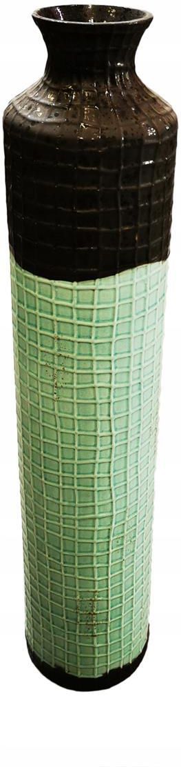 Informacje: Wysokość: 59 cm Materiał: ceramika Kolor: odcienie niebieskiego i brązu Zastosowanie: ozdoba wnętrz, na kwiaty Chropowata powierzchnia