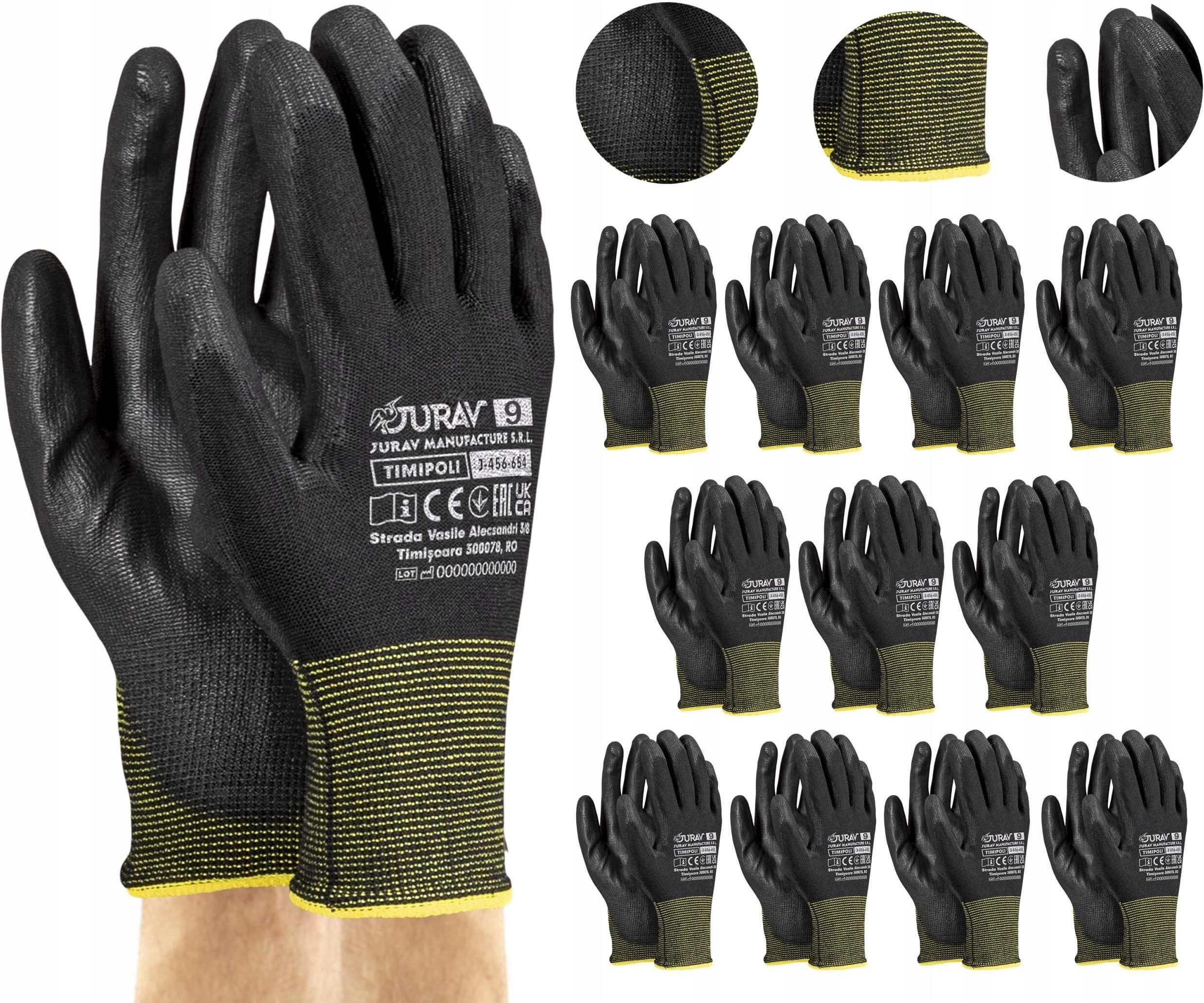 Rękawice Robocze Czarne J-Timipoli_Bb9-L 12 Par Darłowo