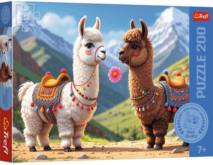 Trefl Puzzle 200el. Kolorowe lamy 13356 Kolorowe lamy to puzzle składające się z 200 elementów, które zachwycą małych miłośników zwierząt. Po ułożeniu powstanie obrazek o wymiarach 480x340 mm. Wysoką jakość, nasycenie kolorów i bezpieczeństwo układania zapewnia kalandrowany papier odbijający …
