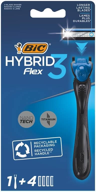 Wyjątkowo gładkie golenie dzięki zestawowi golarki męskiej BIC Hybrid 3 Flex z wymiennymi wkładami. Golarka ta jest wyposażona w 3 ruchome ostrza nano-tech z tytanu, które dopasowują się do konturu twarzy, zapewniając gładkie, dokładne golenie. Uchwyt z tworzywa sztucznego pochodzącego w 90% z recyklingu oraz ruchoma główka zapewniają kontrolę podczas golenia, a pasek nawilżający z aloesem i witaminą E zapewnia fantastyczną gładkość. Dla większej wygody ten zestaw zawiera 1 rączkę i 2 wkłady w opakowaniu nadającym się do recyklingu.