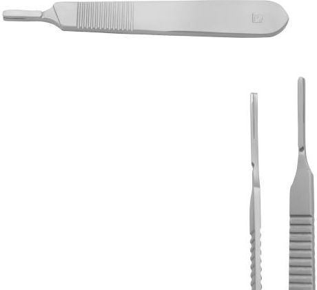 Praktyczny uchwyt na który zakładamy jednorazowe ostrza do skalpela, trzymak pasuje do ostrzy o numerach 10,11,13,15. Wykonany ze stali nierdzewnej, możliwość sterylizacji.