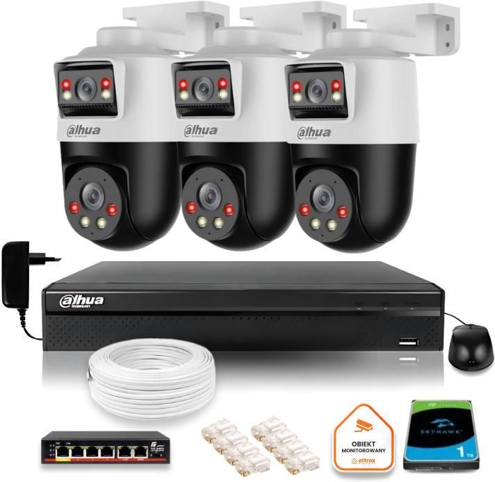 Dahua Zestaw Monitoringu Ip 3 Kamery Obrotowe 2Mp+2Mp Z Dyskiem 1Tb (Z53717O3) Dębica