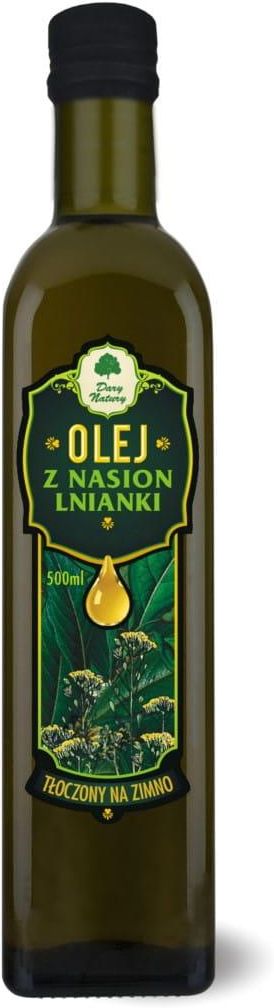 Olej z Lnianki 500ml - Dary Natury Opis produktu Olej z Lnianki marki Dary Natury tłoczony na zimno, nierafinowany i niefiltrowany. Lnianka jest jednym z najstarszych roślin wykorzystywanych do tłoczenia oleju. Smak tego oleju świetnie harmonizuje z sałatkami, surówkami, ziemniakami, kaszami, …