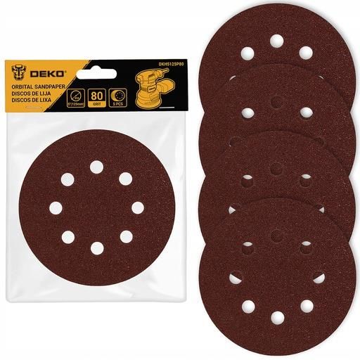 Marka: DEKO Model: DKH5125P80 Gradacja: P80 Średnica: 125 mm Otwory: Tak Ilość sztuk: 5 szt.