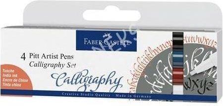 PITT ARTIST PEN Calligraphy to grupa profesjonalnych pisaków cenionych przez Artystów na całym świecie. Faber-Castell idealnie połączył zalety najwyższej jakości pigmentowego tuszu z zaletami nowoczesnego, łatwego w użyciu pisaka. nowoczesne artystyczne pisaki ze ściętą, kaligraficzną końcówką piszącą neutralne PH tuszu bez zawartości kwasów tusz odporny na działanie światła słonecznego po wyschnięciu wodoodporny, nierozmazujący się na papierze zestawy opracowane z profesjonalnymi artystami zajmującymi się liternictwem i kaligrafią idealne do kreatywnego liternictwa i nowoczesnej kaligrafii w zestawie koloru 199, 188, 247, 1018 etui 4 szt.
