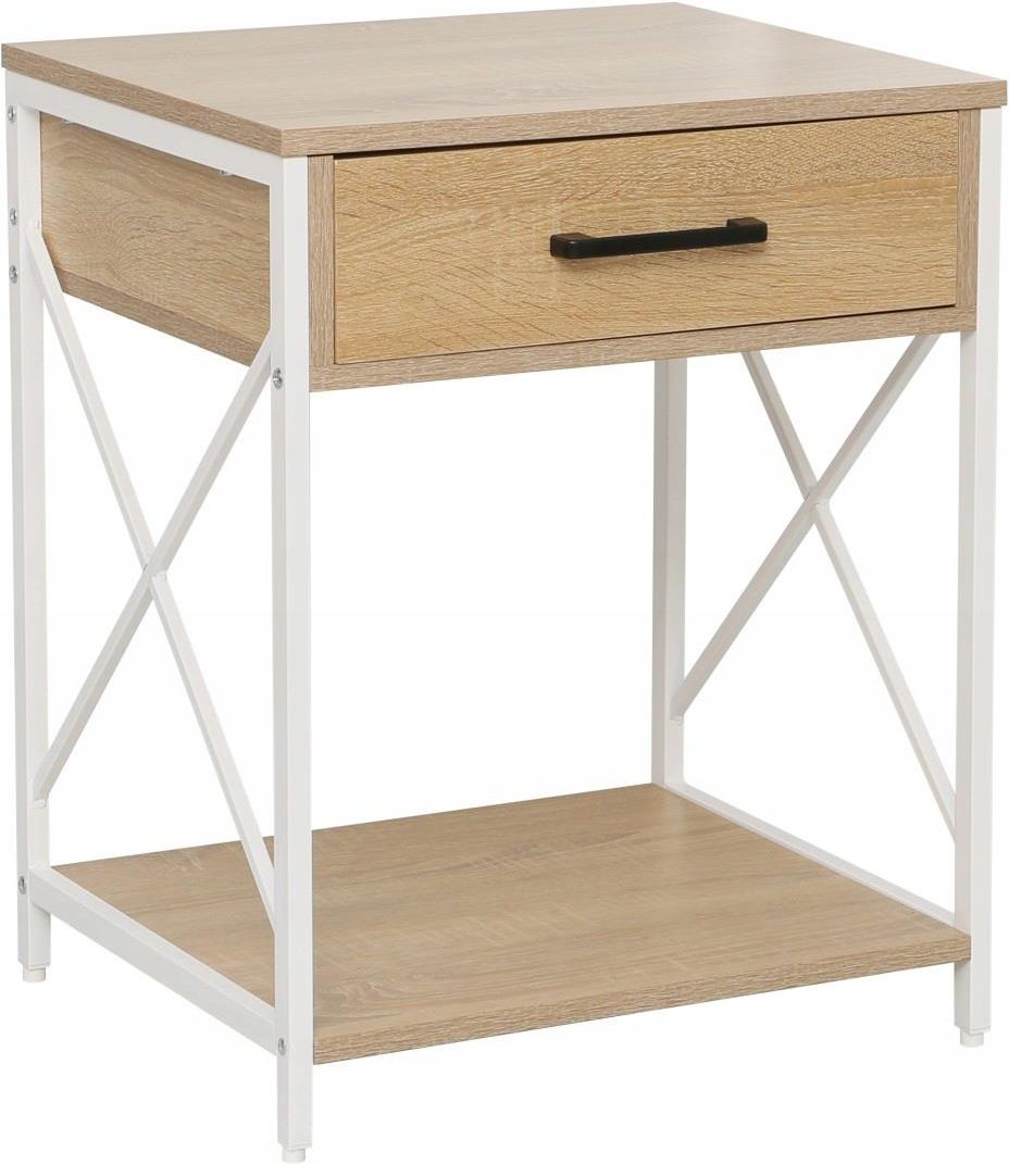 SZAFKA NOCNA DĄB NATURALNY / BIAŁY SN7-FX SZAFKA NOCNA DĄB NATURALNY / BIAŁY SN7-FX Szafka Nocna Dąb Naturalny / Biały SN7-FX to połączenie nowoczesnego designu i funkcjonalności. Idealnie wkomponuje się w każde wnętrze, dodając mu elegancji i stylu. Solidna konstrukcja oraz praktyczne rozwiązania, takie jak szuflada i półka, czynią ten mebel nie tylko pięknym, ale i wyjątkowo użytecznym. Perfekcyjny wybór do sypialni, salonu czy pokoju gościnnego. WYMIARY głębokość:40 cm szerokość: 48 cm wysokość: 60 cm Materiał: Blat: Wykonany z wysokiej jakości płyty laminowanej, zapewniającej trwałość i estetyczny wygląd. Stelaż: Solidny metal malowany proszkowo, odporny na zarysowania i korozję. Kolor: Blat: Elegancki dąb naturalny, który dodaje wnętrzu ciepła i naturalnego uroku. Stelaż: Stylowy biały, nadający meblowi nowoczesny i minimalistyczny wygląd. Inne Cechy: Szuflada: Praktyczna szuflada, idealna do przechowywania drobiazgów, takich jak książki, okulary czy ładowarki. Półka: Funkcjonalna półka, na której można umieścić ulubioną książkę, dekoracje lub inne przedmioty, które chcemy mieć pod ręką. Szerokość (cm): 48 Wysokość (cm): 60 Głębokość (cm): 40 Kod producenta: 111801