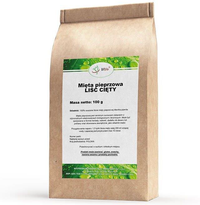 Mięta znana jest od tysiącleci i szeroko wykorzystywana zarówno w kuchni, jak i w medycynie. Jest popularnym składnikiem gum do żucia, past do zębów i płynów do ust, a także kosmetyków i perfum. Wśród wielu rodzajów mięty, do najpopularniejszych należą: mięta pieprzowa, mięta polna, mięta zielona, mięta imbirowa, wonna, długolistna, czy też nadwodna. Mięta pieprzowa ( Mentha piperita ) , zwana także miętą lekarską, to zioło, które doceniano już w starożytności. W lecznictwie znalazło zastosowanie ziele mięty pieprzowej, liście mięty pieprzowej, olejek i mentol (Mentholum), który uzyskiwany jest z olejku z mięty pieprzowej przez wymrażanie. Ponadto, zioło to znajduje zastosowanie w kuchni i ludowej medycynie od wieków, w przypadku dolegliwości ze strony układu pokarmowego takich jak: ból brzucha, wzdęcia czy brak łaknienia. W starożytności napar z mięty był polecany na łagodzenie objawów migreny. Poza tym można ją stosować na zmiany skórne, powstałe w przebiegu ospy czy opryszczki. Mięta pieprzowa ma silny, przyjemny zapach. Najważniejszą substancją czynną pochodzącą z jej liści jest olejek miętowy. Zawiera on ponad 30 związków chemicznych z jego głównym składnikiem –mentolem. Olejek miętowy działa chłodząco, dezynfekująco i rozkurczowo oraz wspomaga ukrwienie. Ponadto, w liściach mięty pieprzowej znajdziemy także garbniki, kwasy fenolowe, gorycze, sole mineralne oraz flawonoidy, a wśród nich te o dobroczynnym wpływie na zdrowie: rutynę, luteolinę, apigeninę i hesperydynę. Preparaty z wyciągów z tej rośliny stosuje sie przede wszystkim wewnętrznie przy dolegliwościach żołądka, jelit oraz dróg żółciowych. Zaleca się ich stosowanie także przy nieżytach górnych dróg oddechowych, a zewnętrznie – przy bólach głowy i migrenach. Mięta wykazuje właściwości rozkurczowe i rozluźniające - obniża napięcie mięśni gładkich jelit, dróg żółciowych i moczowych. Substancje zawarte w ekstrakcie z liści pobudzają czynności wydzielnicze żołądka, jelit i wątroby, stymulują wydzielanie soku żołądkowego i żółci, co ułatwia trawienie i wchłanianie związków zawartych w pokarmach. Natomiast olejek miętowy polecany jest jako środek wspomagający w nieżytach górnych dróg oddechowych (do inhalacji) oraz łagodzeniu stanów zapalnych błony śluzowej jamy ustnej. Wyciągi z liści mięty stosowane zewnętrznie w postaci maści wykazują działanie łagodzące i przeciwświądowe. Z tego względu zaleca się ich wykorzystanie w przebiegu ospy wietrznej oraz do gojenia pęcherzy w przebiegu opryszczki. Olejek miętowy zalecany jest także miejscowo w bólach mięśniowych. Napar z mięty zwiększa produkcję żółci, soków żołądkowych, a także, przyspiesza trawienie. Picie mięty przynosi ponadto ulgę przy zaparciach, wzdęciach czy zatruciach pokarmowych. Zioło działa rozkurczowo, więc pomaga w bólach brzucha, pozbawiając uczucia ciężkości. Co więcej, można ją stosować w nieżycie żołądka oraz w syndromie drażliwego jelita. Warto też wiedzieć, że mięta pieprzowa przywraca prawidłowe ruchy perystaltyczne jelit, co pozwala na odpowiednie przemieszczanie treści jelitowej oraz odejście gazów i zapobiega wzdęciom. Z kolei olejek miętowy, który wykorzystuje się w kosmetykach o działaniu oczyszczającym i łagodzącym, daje uczucie orzeźwienia i odświeżenia. Używa się go w preparatach przeznaczonych do pielęgnacji cery problematycznej, tj. tłustej i trądzikowej, ponieważ znajdujący się w nim mentol świetnie wpływa na pozbawioną blasku skórę, rozświetlając ją, jednocześnie kontrolując wydzielanie sebum. Można zatem kilka jego kropli dodać do ulubionej maseczki do twarzy, np. takiej na bazie glinki kosmetycznej, co wzbogaci jej skład i nada wspomagających właściwości, przede wszystkim antybakteryjnych. Jeżeli chcemy pozbyć się zaskórników, należy zastosować kąpiel parową z suszonych liści mięty – wystarczy zalać wrzątkiem garść ziół, pochylić głowę nad parą i okryć się szczelnie ręcznikiem. Przesycone mentolem powietrze dokładnie oczyści zatkane pory, odkazi oraz ukoi podrażnioną skórę. Warto również wiedzieć, że przetwory z mięty pieprzowej mogą być stosowane w schorzeniach wątroby i dróg żółciowych, zapaleniu pęcherzyka żółciowego, oraz w lekkiej niewydolności wątroby i zmniejszonym wytwarzaniu żółci. Współczesna fitoterapia poleca stosowanie mięty pieprzowej pomocniczo w kamicy żółciowej i żółtaczce oraz w okresie rekonwalescencji po przebytym zapaleniu wątroby. SKŁAD: 100% suszone liście mięty pieprzowej ( Mentha piperita ) Stosowanie Łyżeczkę suszonej mięty pieprzowej należy zalać 200 ml wrzącej wody, a następnie odstawić pod przykryciem na około 5-10 minut. Tak przygotowany napar można spożywać kilka razy dziennie, lub w przypadku niestrawności. Napar z mięty pieprzowej stosuje się w dolegliwościach układu pokarmowego, zwłaszcza bólu brzucha, wzdęciach i braku łaknienia. Substancje zawarte w ekstrakcie z liści pobudzają czynności wydzielnicze żołądka, jelit i wątroby, stymulują wydzielanie soku żołądkowego i żółci, co ułatwia trawienie i wchłanianie związków zawartych w pokarmach. Poza tym można ją stosować na zmiany skórne, powstałe w przebiegu ospy czy opryszczki. Mięta z powodzeniem może służyć w kuchni. Stosowana bywa jako przyprawa do gotowania potraw. Świeże listki mięty dobrze komponują się z deserami, można je dodawać do sałatek, dipów, sosów. Mięta to popularna przyprawa w kuchni angielskiej – wykorzystuje się ją do przyrządzania sławnych sosów miętowych. Jest również bardzo często używana w kuchni amerykańskiej, przyprawia się nią sałatki owocowe i warzywne. Jednak najczęściej dodaje się ją do koktajli i deserów. Przeciwwskazania Napary z mięty pieprzowej ni