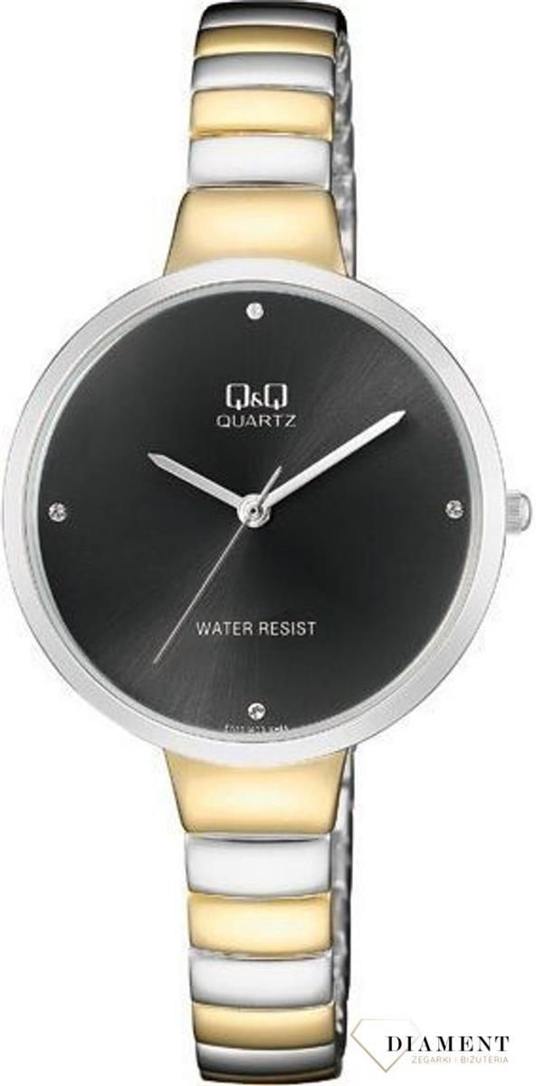 MECHANIZM: Zegarek damski Q&Q CLASSIC F611-402 wyposażony jest w kwarcowy mechanizm, zasilany za pomocą baterii. Posiada bardzo wysoką dokładność mierzenia czasu +/- 10 sekund w przeciągu 30 dni. KOPERTA: Mechanizm japoński mieści się w stalowej i wytrzymałej kopercie w kolorze srebra i złota. W zegarkach Q&Q wykorzystany jest jeden z najlepszych stopów stali 316L pozłacany nowoczesną metodą pozłacania. Q&Q w produkcji zegarków wykorzystuje technologie powlekania powierzchni PVD (ang. Physical Vapour Deposition - fizyczne osadzanie z fazy gazowej): to bezpieczna dla środowiska i wyjątkowo trwała metoda powlekania. Powłoka PVD charakteryzuje się pięciokrotnie wyższa twardością (1150-1250 Vickersów) niż powłoki wykonywane technika tradycyjna. SZKŁO: Zegarek wyposażony w szkło mineralne ( 5 stopień w skali Mohsa) - najczęściej spotykane, bardzo przejrzyste, czyste, cienkie, elastyczne i odporne na pęknięcia. TARCZA: Tarcza okrągła, grafitowa wykończona cyrkoniami. Wskazówki w tym modelu są w kolorze złotym o klasycznym kształcie. BRANSOLETKA: Wykorzystanie wysokiej jakości stali w bransolecie gwarantuje, że zegarek odporny jest na korozję i uszkodzenia oraz nie powoduje alergii. ZAPIĘCIE: Eleganckie zapięcie typu klips. WODOSZCZELNOŚĆ: Zegarek z wodoszczelnością 30m (3 ATM), gwarantuje właścicielowi, że nie musi bać się zachlapań, czyli np. mycia rąk. Zapoznaj się z pozostałą ofertą ofertą damskich zegarków . Zegarki damskie są dla kobiet biżuterią ale również praktycznym dodatkiem. Oprócz sprawdzenia czasu kobiety uwielbiają za pomocą zegarka sprawdzać swoją aktywność fizyczną. Aktualnie zegarki potrafią zachęcić do wzmożonej aktywności fizycznej poprzez posiadanie funkcji takich jak: zliczanie wyników, dopingowanie do osiągania wyznaczonego celu, wyniku aktywności w ciągu dnia. Swój wymarzony model znajdą u Nas kobiety, które uwielbiają domowe zacisze ale również te o rozrywkowym podejściu do życia. Do wyboru mamy zatem typowo klasyczne modele o stonowanych kolorach, ekskluzywne zegarki złote damskie, czy modowe egzemplarze zachwycające swoim niebanalnym widokiem. Zegarek damski japońskiej marki Q&Q na rękę może przyjąć różny wygląd i styl. Niezwykle dużą popularnością cieszą się egzemplarze od tej wieloletniej firmy z tradycją. Marka ta zyskał uznanie na polskim rynku dzięki oryginalnym i ponadczasowym wzorom stosowanym w swoich produktach. Uniwersalne zegarki damskie czarne i białe o doskonałym wykonaniu skradają serca wielu Pań w różnym wieku. Niektóre to całkowicie klasyczne modele, inne bardziej szałowe zyskały intensywny złoty kolor oraz różnego rodzaju zdobienia w postaci szlifu słonecznego lub nałożonych na tarczę połyskujących kamyków. Bez najmniejszego problemu znajdziemy tutaj modowe zegarki na bransolecie damskie, czy proste na tradycyjnym skórzanym pasku. Marka japońskich zegarków Q&Qpojawiła się na rynku po raz pierwszy w roku 1976. Od pewnego czasu, marka Q&Q rozwija się prężnie w dziedzinie zegarków elektronicznych, i analogowych zegarków kwarcowych. Sama nazwa – Q&Q – pochodzi od angielskiego Quality & Quantity (Jakość i Ilość), co oznacza produkcję z zachowaniem wysokich standardów jakości. Każdy znajdzie dla siebie odpowiedni zegarek ,szeroki asortyment marki, bogate wzornictwo i nowoczesne technologie zadowolą każdego użytkownika. Nasz sklep internetowy z zegarkami Q&Q jest autoryzowanym dystrybutorem marki. Wszystkie damskie i męskie zegarki Q&Q zakupione w naszym sklepie posiadają 2 letnią gwarancję (z możliwością przedłużenia gwarancji do 3 lat) i zapakowane są w oryginalne opakowanie producenta. Jest to eleganckie pudełko do zegarka z logiem japońskiej marki Q&Q.