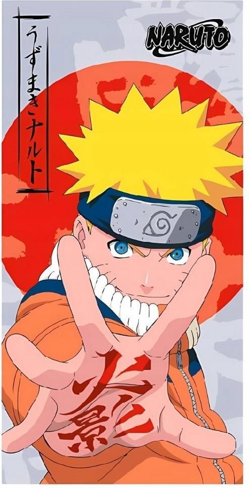 Stylowy ręcznik na plażę lub do domu z motywem popularnej mangi i anime Naruto. Wymiary: 70 x 140 cmMateriał: 100% poliester