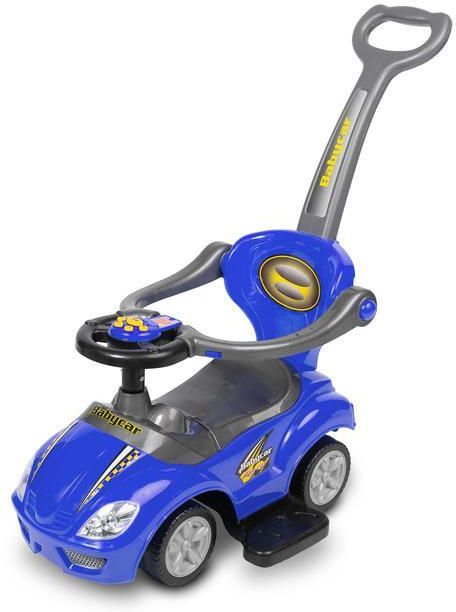 Jeździk Race Car 2 w 1 z dźwiękiem – od pchacza do jeździka (12–36 miesięcy) Rewelacyjny jeździk, pchacz Race Car to nie lada gratka dla małych kierowców. Wykonany z solidnych i wytrzymałych materiałów, zapewniających długotrwałe użytkowanie. W przypadku starszych dzieci podnóżki, barierkę i rączkę można zdemontować. Model został wyposażony w panel dźwiękowy. Jeździk pomaga rozwijać umiejętności motoryczne dziecka, a także gwarantuje dużo zabawy i radości. Specjalna "stopka" w tylnej części jeździka, stabilizuje pojazd i blokuje go przed wywróceniem się. Wymagana jest instalacja 2 baterii AA 1,5V, które nie są dołączone do zestawu. CHARAKTERYSTYKA Skrętne przednie koła Przeznaczony dla dzieci w wieku od 12 Dla dzieci o wadze do 25 kg Miejsce na skarby pod siedzeniem Imitacja liczników Model wyposażony w panel dźwiękowy Atrakcyjne kolory Wyprofilowane siedzonko, wygodne oparcie, służące również jako pchacz Trwałe i wysokiej jakości tworzywo sztuczne Długa, zdejmowana rączka do pchania pojazdu Łatwe składanie, pokazane krok po kroku w załączonej instrukcji