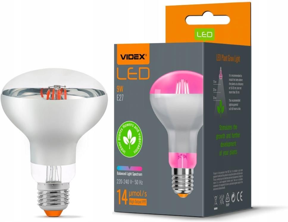 Videx Żarówka Led Do Uprawy Roślin Filament R80 E27 9W Fitolampy 9271 Dębica
