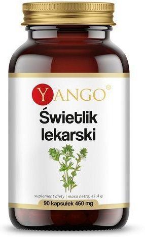 YANGO - świetlik lekarski, na podrażnione oczy, jest suplementem diety zawierającym fitoskładniki, które mogą być pomocne w zmniejszaniu objawów dyskomfortu oczu. Znajdująca się w świetliku aukubina ma działanie przeciwzapalne i łagodzące w stanach zapalnych błon śluzowych. Składniki: Ekstrakt z ziela Świetlika lekarskiego (Euphrasia officinalis) 20:1. Skład kapsułki: Celuloza roślinna (wegetariańskie). Masa netto: 90 kapsułek. Właściwości: Pochodzący z Europy świetlik lekarski (Euphrasia officinalis) to roślina o niewielkich białych kwiatach z muszelkowatymi brzegami, żółtymi plamkami i czarnym środkiem. Świetlik był tradycyjnie stosowany w leczeniu wszelkiego rodzaju chorób oczu, a pierwsze wzmianki o jego użyciu pochodzą ze średniowiecza, kiedy to suszony świetlik często bywał łączony z innymi roślinami. W późniejszych czasach używano go także do produkcji specjalnego rodzaju piwa, które stosowane w niewielkich ilościach, służyło poprawie wzroku. Ziele świetlika lekarskiego zawiera fitoskładniki, które mogą być pomocne w zmniejszaniu objawów dyskomfortu oczu. Znajdująca się w świetliku aukubina ma działanie przeciwzapalne, łagodzące zmęczone i podrażnione oczy, a garbniki działają ściągająco, pomagając wysuszyć wydzieliny i łagodzić stany zapalne błon śluzowych. Jest to szczególnie przydatne w przypadku zapalenia powiek, lub spojówek. Zalecane dzienne spożycie: 1 kapsułka raz dziennie. Kapsułkę połknąć i popić dużą ilością wody, po posiłku. Przeciwwskazania: Osoby przyjmujące leki przed użyciem powinny skonsultować się z lekarzem lub farmaceutą. Niewskazane dzieciom, kobietom w ciąży oraz karmiącym. Przechowywanie: Przechowywać w suchym i ciemnym miejscu w temperaturze pokojowej, w miejscu niedostępnym dla małych dzieci. Ważne informacje: Nie należy przekraczać zalecanej porcji do spożycia w ciągu dnia. Suplement diety nie może być stosowany jako substytut (zamiennik) zróżnicowanej diety ani aktywnego trybu życia. Utrzymanie prawidłowego stanu zdrowia wymaga zrównoważonego i zróżnicowanego odżywiania i prowadzenia zdrowego trybu życia. Istnieje wiele czynników ryzyka choroby. Zmiana jednego z tych czynników ryzyka może wywierać korzystny wpływ lub nie wywierać go. Producent: YANGO Sp. z o.o. ul. Granitowa 3/14 02-681 Warszawa