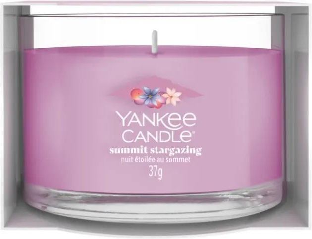 Mini świeca Yankee Candle – wielka moc zapachu w kompaktowej formie Poznaj esencję kolekcji Signature w wersji mini! Ta niewielka świeca to idealny sposób, by przetestować zapach, podarować komuś aromatyczną niespodziankę lub stworzyć przytulny klimat w mniejszych przestrzeniach. Mimo kompaktowego rozmiaru, oferuje wszystko, co najlepsze w świecach Yankee Candle. Nuty zapachowe Górne: cytryna, jagody, olejek Petitgrain – świeżość z nutą owocowej słodyczy Środkowe: tuberoza, jaśmin, opal – kwiatowa elegancja i subtelna zmysłowość Dolne: bursztyn, fiołek, drewno hinoki – ciepło, głębia i relaksująca baza Mini rozmiar, maksymalna przyjemność – Signature w wersji, która zmieści się wszędzie. Zamów teraz i poczuj, jak Twój dom zmienia się w miejsce pełne spokoju, stylu i zapachu, który zostaje w pamięci. Parametry produktu Waga: 0,10 kg Czas palenia: do 10 h Wysokość: 4 cm Szerokość: 5 cm Zapachy: SUMMIT STARGAZING Grupy zapachowe: Floral Ilość knotów: 1 knot Typ knotów: bawełniany Gramatura: 37 g Yankee Candle to światowy lider w produkcji świec i innych produktów zapachowych w sektorze premium . Wrażliwość na potrzeby klienta i wielka pasja napędzają nas do ciągłych poszukiwań . A kiedy wyselekcjonujemy już właściwe nuty zapachowe, naszym produktom zapewniamy jakość, która jest unikatowa na skalę światową. Nasi klienci wiedzą o tym i dzielą z nami tę pasję. Dlatego marka Yankee Candle jest najbardziej rozpoznawalną marką na światowym rynku świec zapachowych. Autentyczne. Prawdziwe. Wyraziste. Długotrwałe. Najwyższej jakości - takie są produkty Yankee Candle.