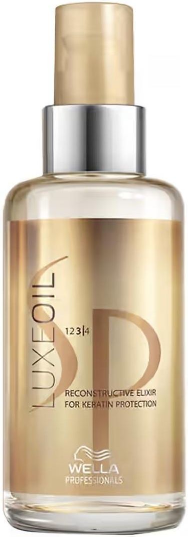 WELLA SP LUXE OIL ELIXIR OLEJEK ODBUDOWUJĄCY Z KERATYNĄ Luxe Oil Eliksir Odbudowujący wykorzystuje Technologię Transformacji, która zapewni korzyści włosom na zewnątrz i od wewnątrz, jednocześnie chroniąc je przed uszkodzeniami. Struktura włosów może być nawet 10 razy bardziej wygładzona już po pierwszy użyciu. Trzy razy większa ochrona keratyny, zapewnia natychmiastową i długotrwałą gładkość. Pozostawia włosy zdrowymi i naturalnie pięknymi. Włosy są łatwe w codziennej stylizacji, dzięki wyjątkowej, lekkiej formule olejku. Zawiera trzy olejki Olejek arganowy, zwany inaczej płynnym złotem, dogłębnie nawilża włosy przywracając im naturalny poziom wody. Dodatkowo wygładza łuski włosa zapobiegając utracie wilgoci. Olejek migdałowy dostarcza pasmom niezbędnych składników odżywczych i witamin, które sprawiają, że włosy rosną niezwykle zdrowe i mocne. Olejek jojoba intensywnie odbudowuje zniszczone i rozdwojone końcówki zapobiegając tym samym dalszym uszkodzeniom. Sposób użycia: Zastosowanie dla mokrych włosów wygładzenie: natychmiastowo odbudowuje i zmienia teksturę włosów. Po umyciu w włosów szamponem, nałóż 2-3 krople SP Luxe Oil od połowy długości włosów aż po same końce. Kondycja włosów poprawia się już po pierwszym użyciu. zmiękczenie: chroni keratynę oraz zapewnia długotrwałą gładkość. Używaj SP Luxe Oil regularnie i zwiększ nawet 6 razy gładkość włosów już po 24 godzinach. ochrona: tworzy niewidzialną tarczę ochronną dla włosów. Nałóż niewielką ilość SP Luxe Oil na wilgotne włosy, użyj grzebienia z szeroko rozstawionymi zębami, aby delikatnie usunąć pozostałości, następnie wysusz włosy. podkreślenie: idealny aby podkreślić loki lub włosy cienkie. Przed suszeniem, nałóż 2-3 krople na włosy i nadaj charakter fryzurze według własnego uznania, w zależności czy to loki czy włosy cienkie. Zastosowanie dla suchych włosów nawilżenie: jako kuracja przed myciem szamponem. Podziel włosy na sekcje, następnie nałóż 2-3 krople SP Luxe Oil na włosy i skórę. Wmasuj i odczekaj 5-10 minut. Rozczesz włosy, a następnie użyj szamponu i odżywki SP, wygładzenie: zapewnia ochronę po suszeniu. By kontrolować suche i kręcone włosy, nałóż kilka kropel SP Luxe Oil po suszeniu. W razie potrzeby powtórz, rozświetlenie: tworzy przepiękny połysk. Dla wyjątkowego blasku, wyciśnij 2-3 krople SP Luxe Oil i nałóż na wilgotne włosy przed codzienną stylizacją, odbudowa: pielęgnuje włosy przez całą noc. Nałóż SP Luxe Oil równo na włosy przed pójściem spać. Rano pozostaw na włosach lub spłucz.