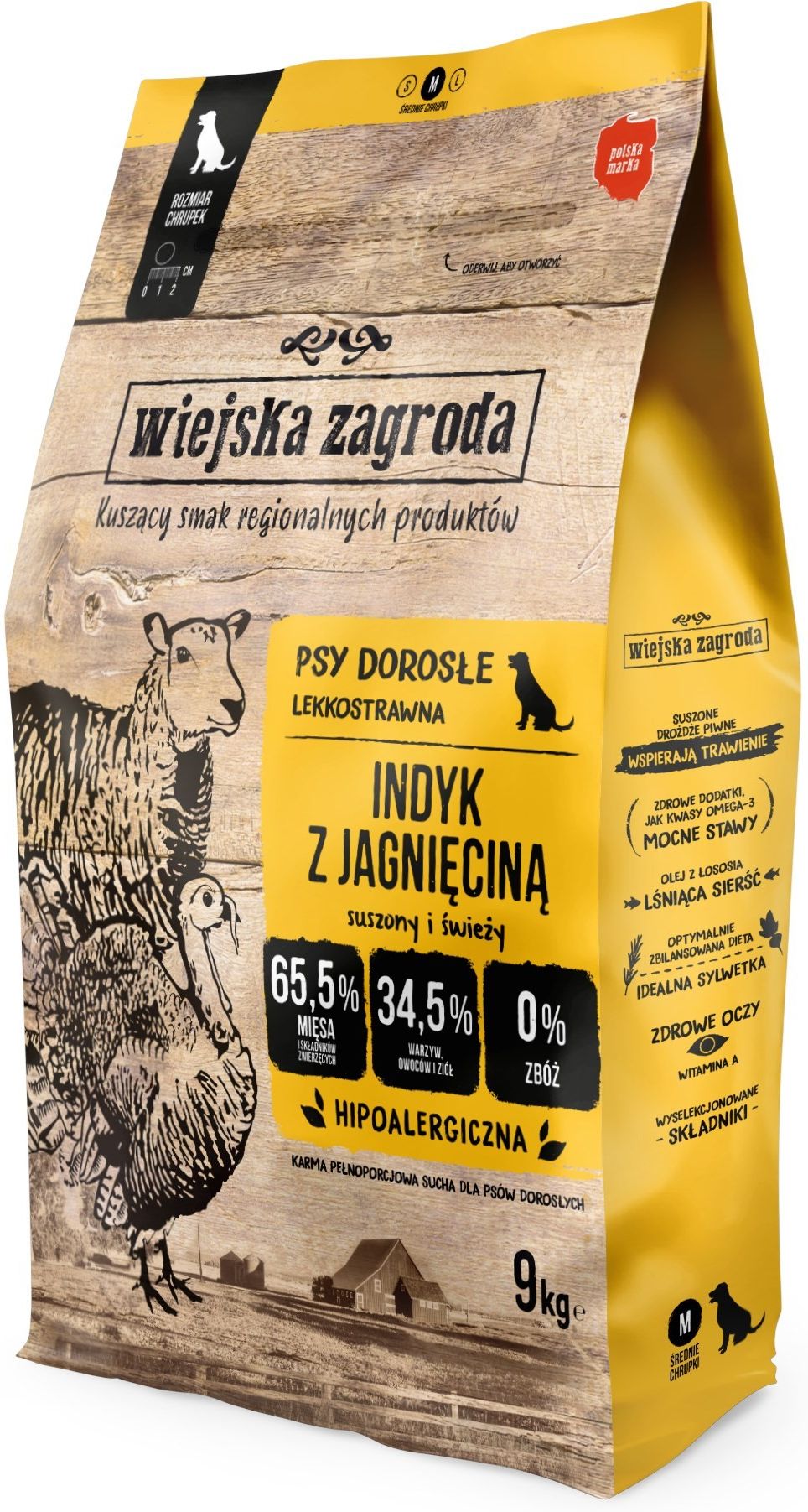Karma sucha dla psa Wiejska Zagroda - Indyk z Jagnięciną.  Karma pełnoporcjowa sucha dla psów dorosłych POSZUKUJESZ IDEALNEGO JEDZENIA DLA SWOJEGO PSA? Czy wiesz jaki wpływ na jego zdrowie i samopoczucie ma posiłek, który mu podajesz? Wyobraź sobie najwyższej jakości składniki, które dostarcza …