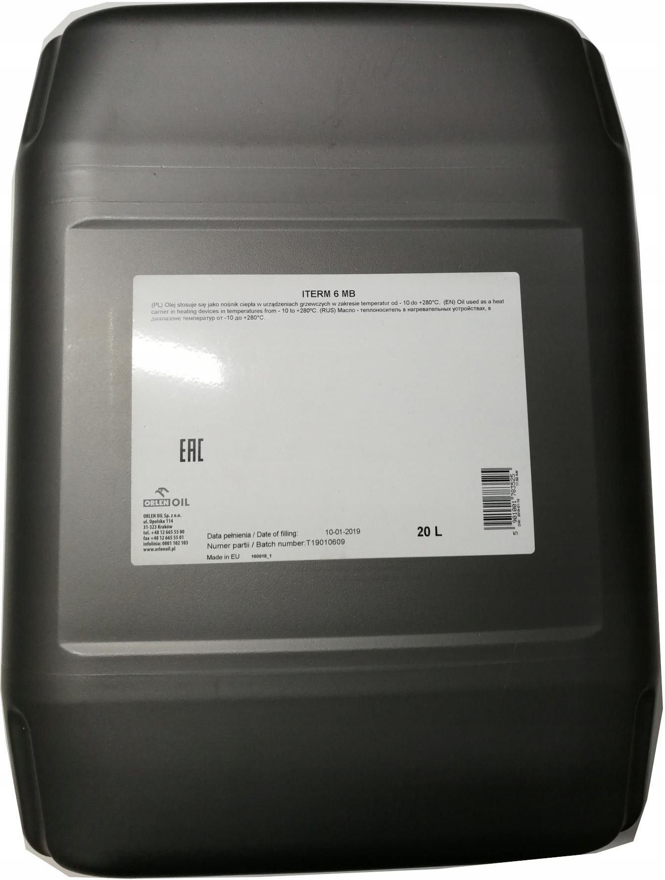 Orlen Oil ITERM 6 Mb 20L Olej termiczny grzewczy do urządzeń grzewczych CO WYRÓŻNIA NASZ PRODUKT 1✔️Wysoka odporność na degradację termiczną i utlenianie, zapewniająca długotrwałą i niezawodną pracę instalacji grzewczych. Optymalna lepkość umożliwiająca łatwy rozruch oraz sprawną cyrkulację oleju w …