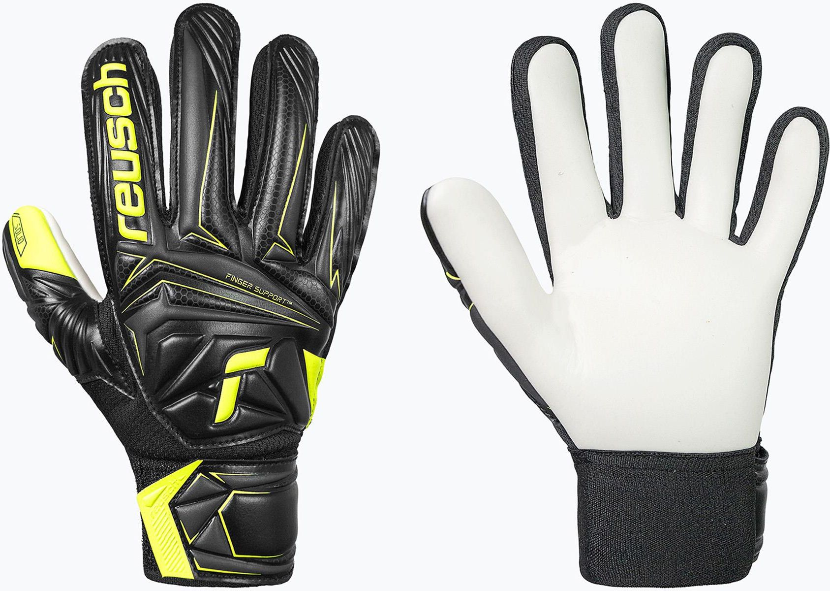 Reusch Rękawice Bramkarskie Dziecięce Attrakt Starter Solid Finger Support Junior Black/Safety Yellow Dębno
