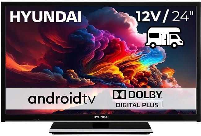 TELEWIZOR samochodowy ANDROID SMART TV HYUNDAI 24 cale | HDR | WiFi | Bluetooth | DLNA | Chromecast | DVBT-T2 HEVC | 12V 3x HDMI, 2x USB | Cl na kartę | LAN | PC VGA __________ Uniwersalne zasilanie: sieciowe ~230V oraz 12V DC (wtyk do gniazda zapalniczki w zestawie). Zasilanie 12V fabrycznie …